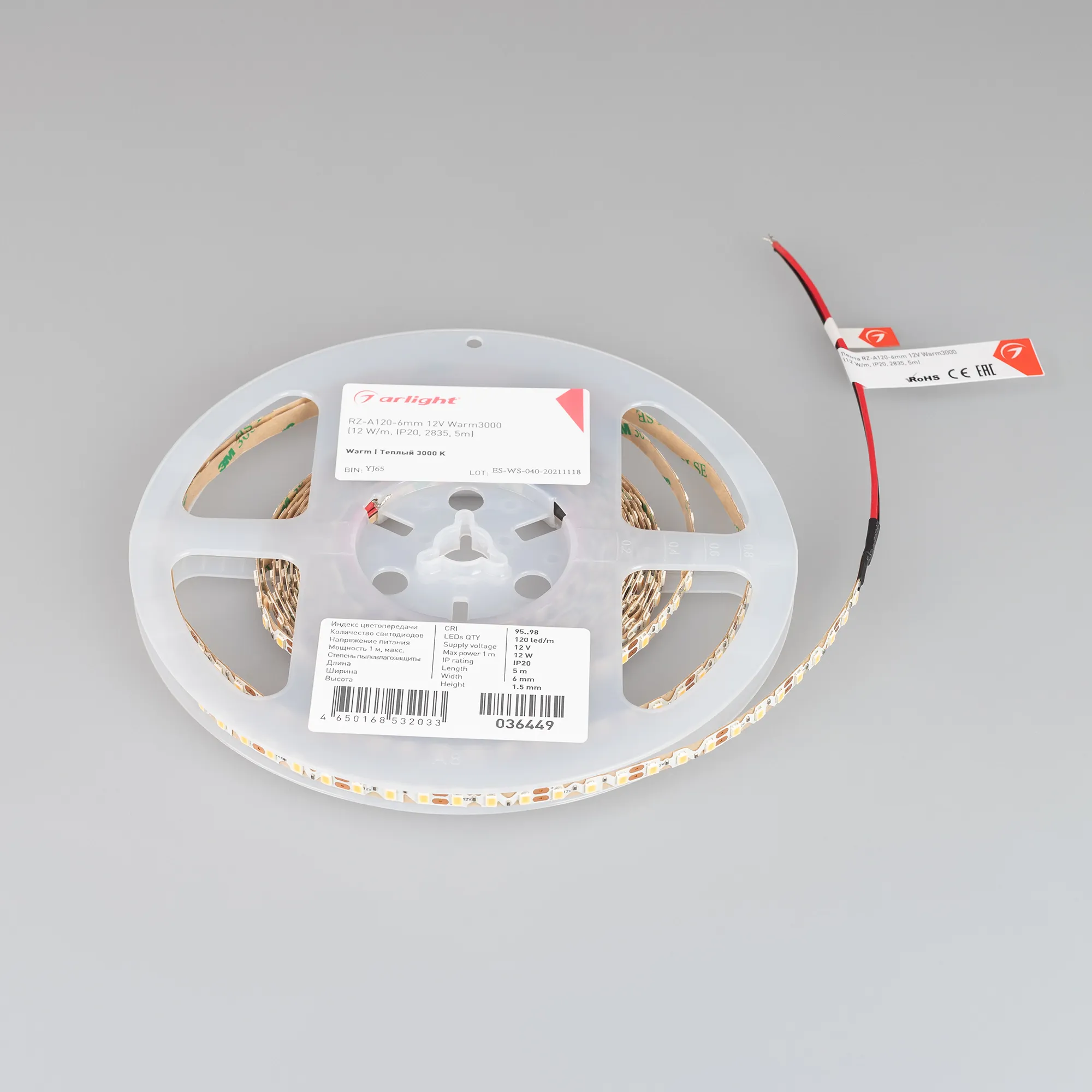Лента светодиодная RZ-A120-6mm 12V Warm3000 (12 W/m, IP20, 2835, 5m) (Arlight, 12 Вт/м, IP20)