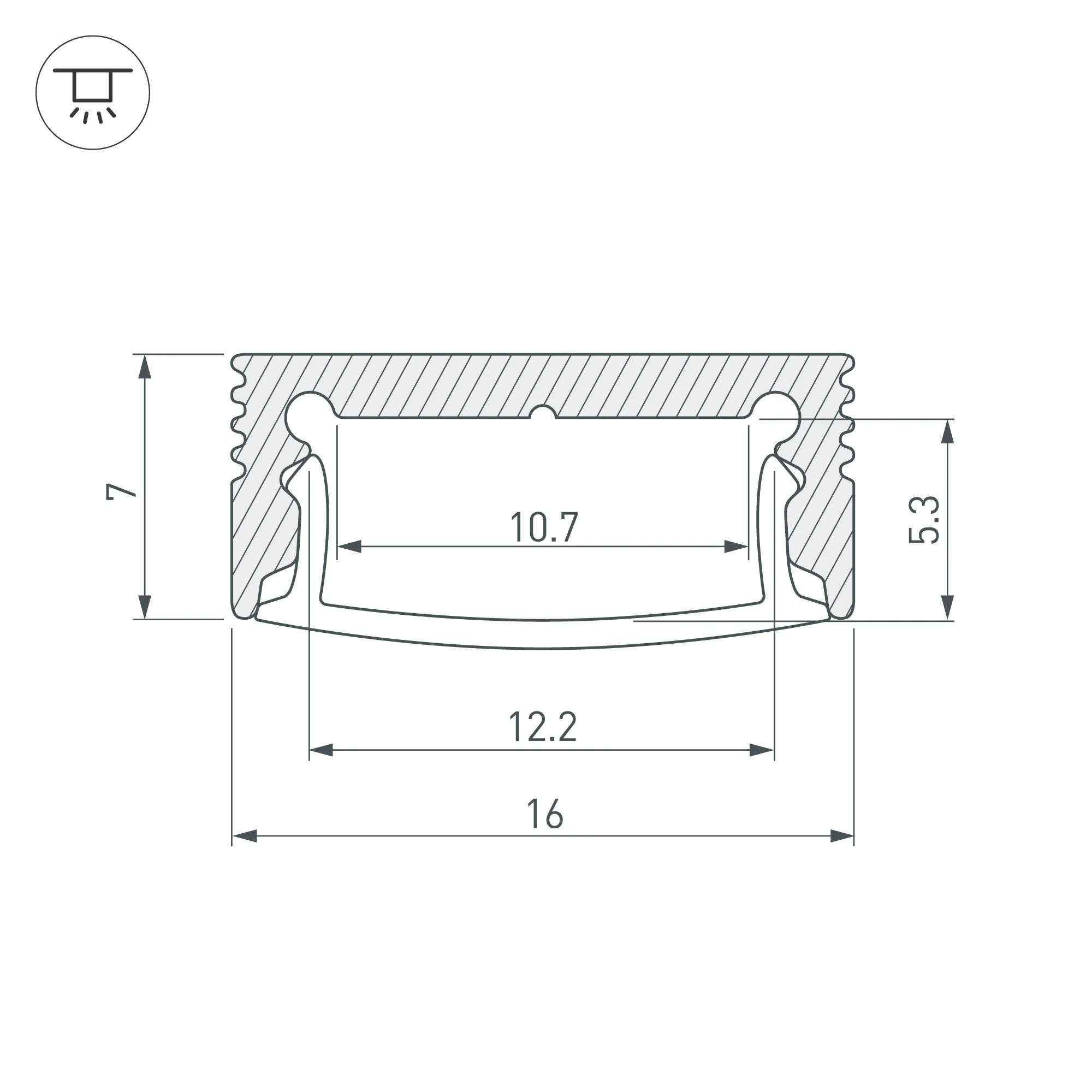 Алюминиевый профиль для светодиодных лент и линеек. Цвет - черный RAL9005 (порошковая окраска). Габаритные размеры (L×W×H): 2000x16x7 мм. Ширина площадки для ленты 10 мм. Экраны, заглушки и другие аксессуары приобретаются отдельно. Цена за 1 метр.