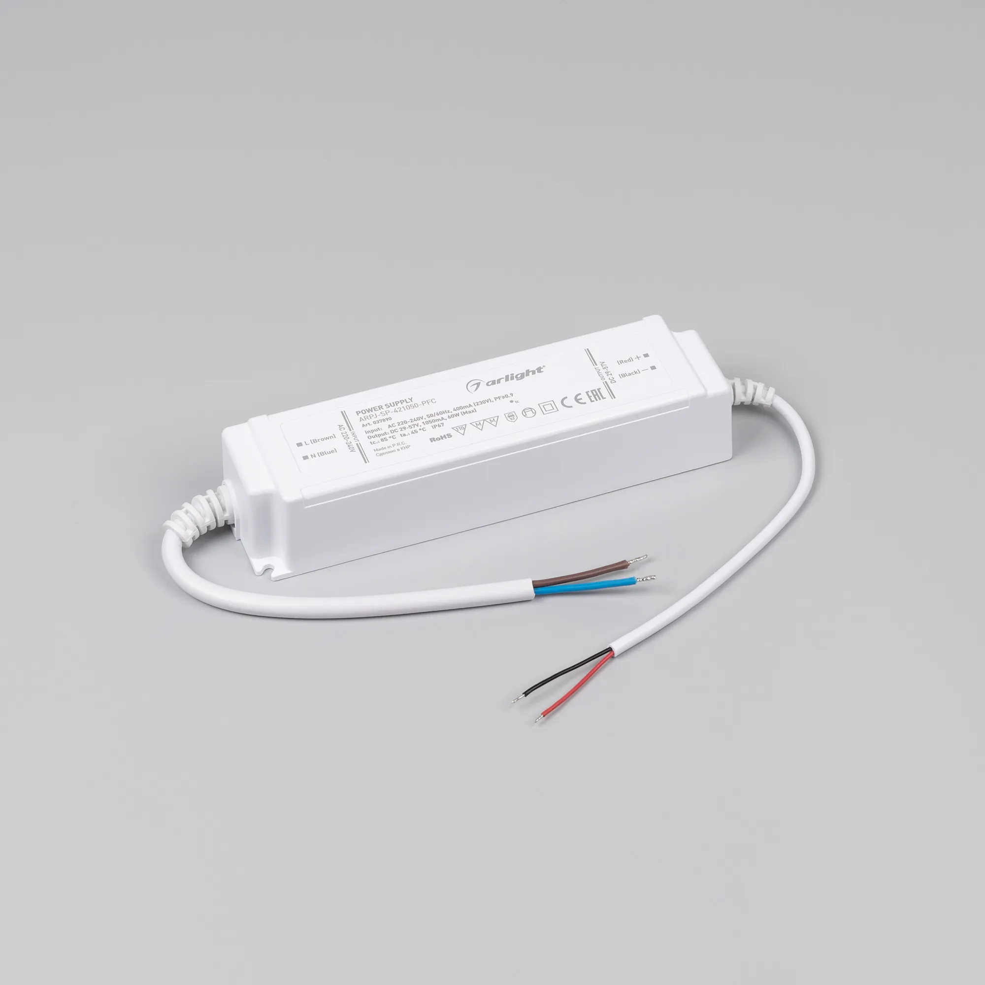 В магазине Мельковский Свет Вы можете купить "Блок питания ARPJ-SP-421050-PFC (60W, 29-57V, 1.05A) (Arlight, IP67 Пластик, 5 лет)"