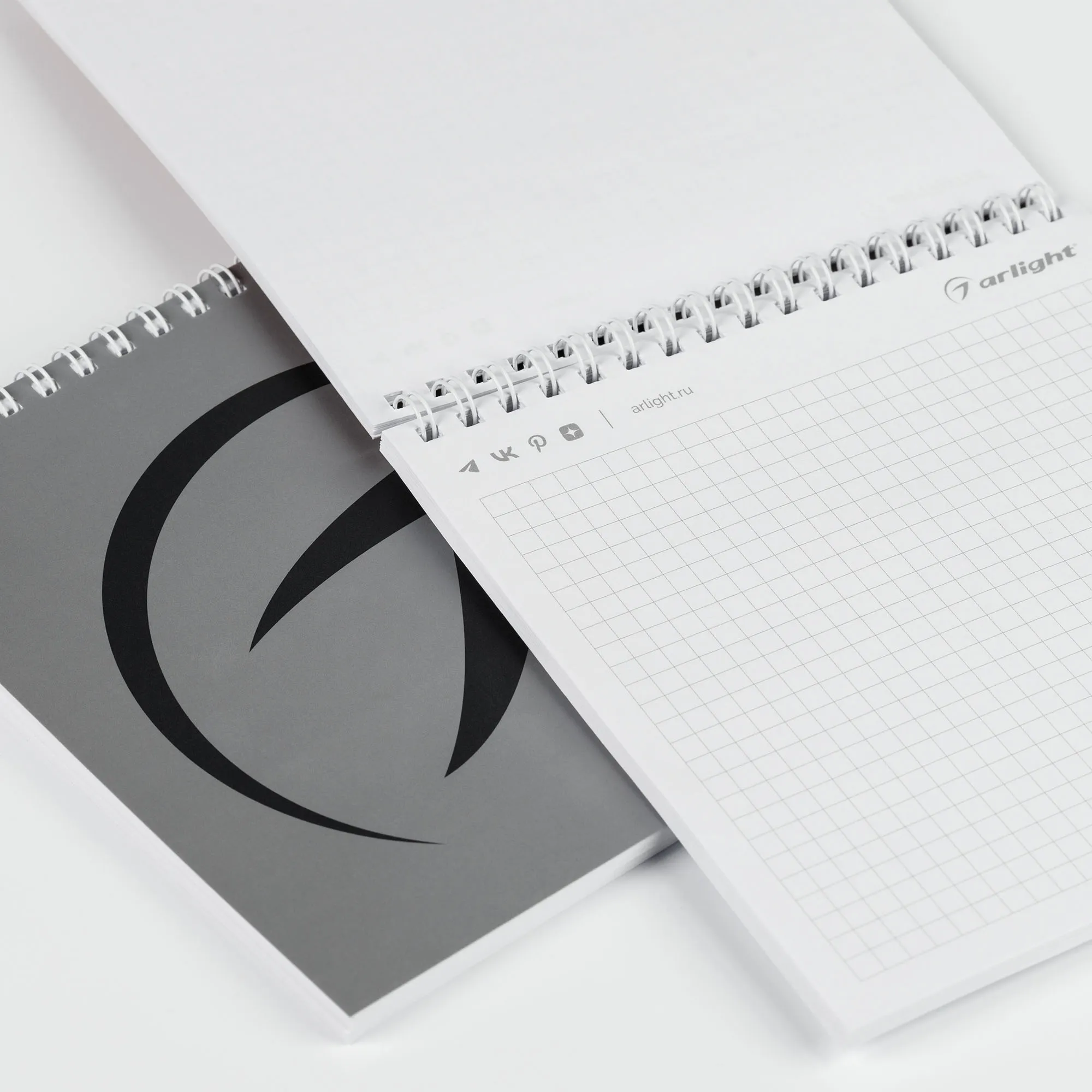 Блокнот Arlight, брендированный, размер 150×155 мм, линовка в клетку, 50 листов, на пружине.