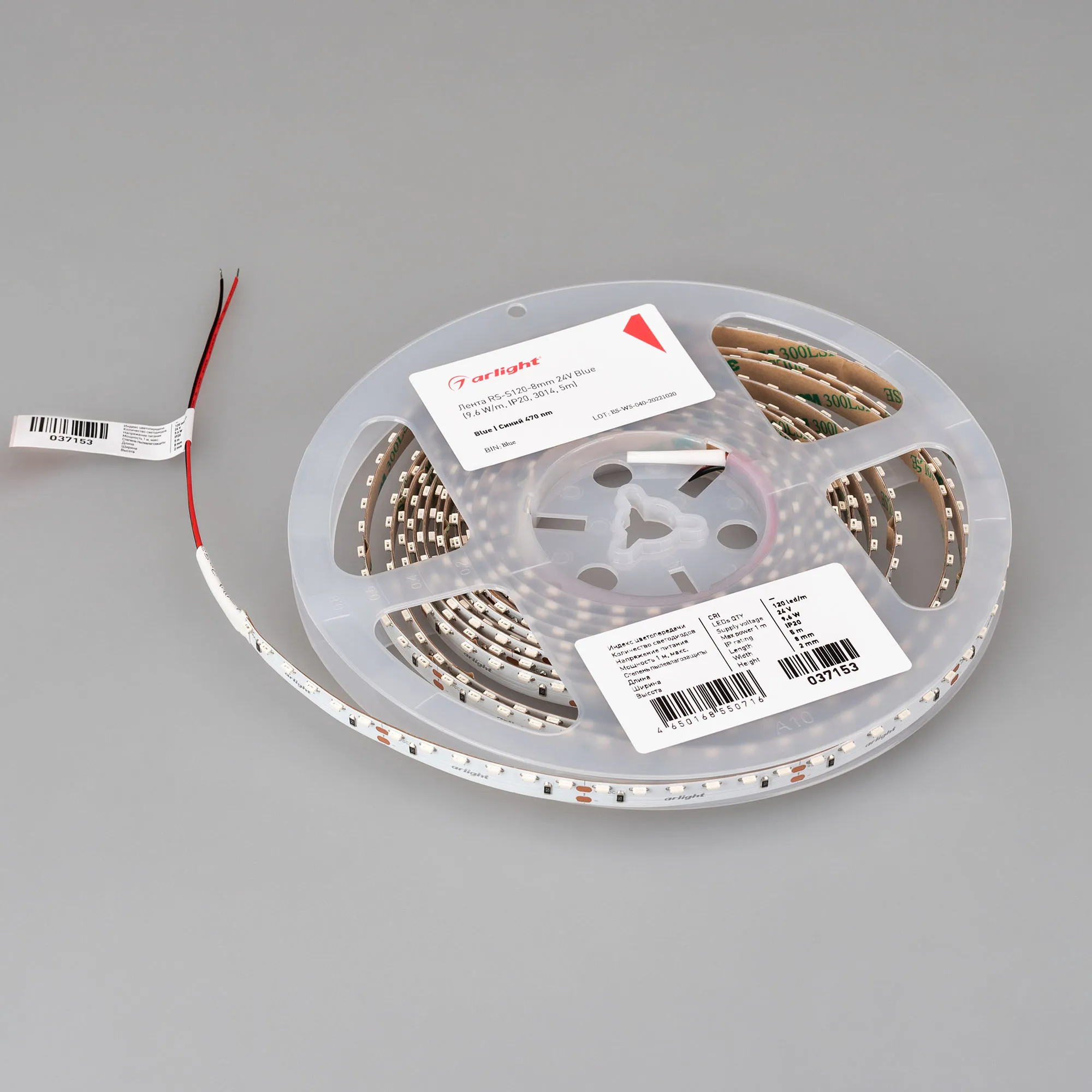 Лента светодиодная RS-S120-8mm 24V Blue (9.6 W/m, IP20, 3014, 5m) (Arlight, боковое свечение)