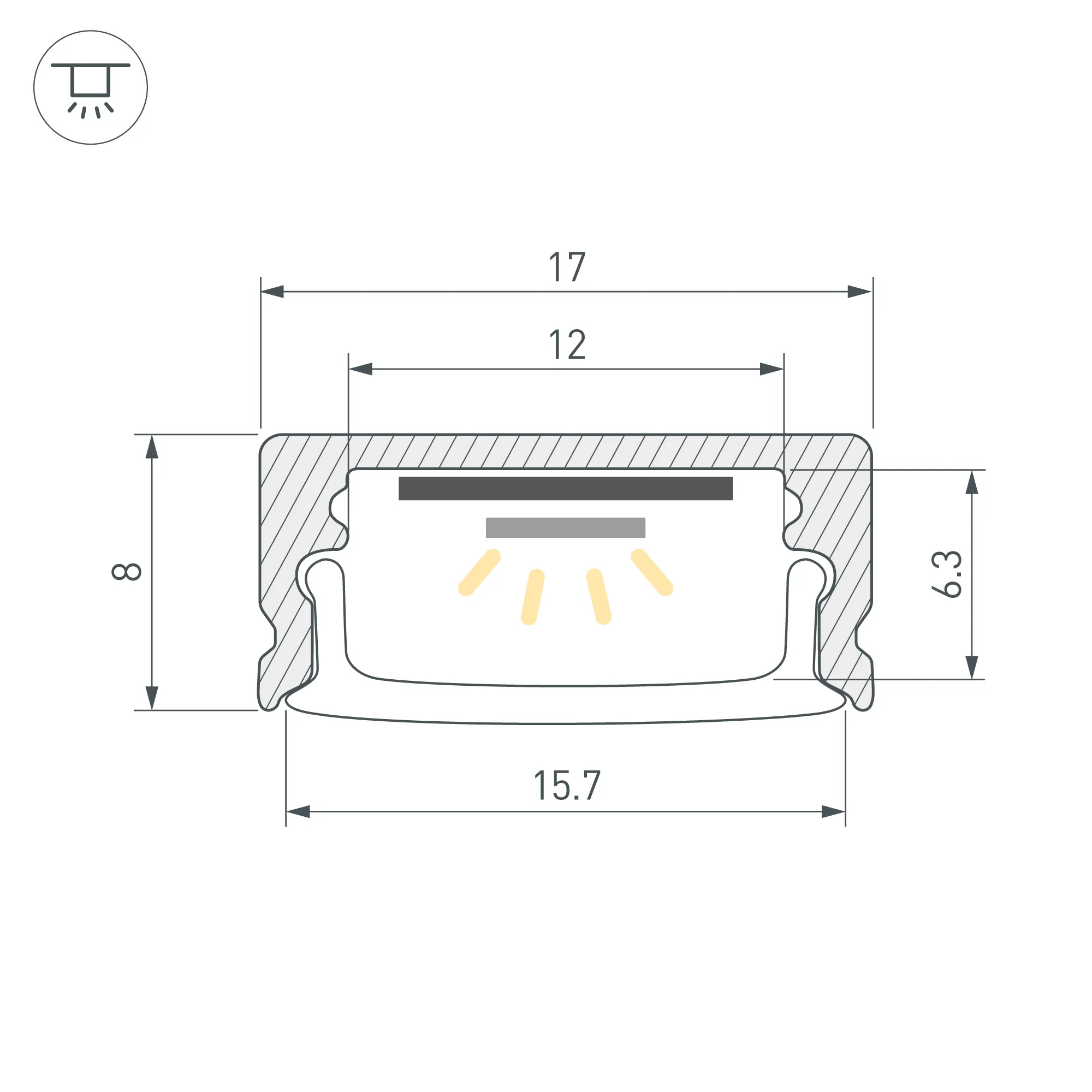 Алюминиевый анодированный накладной профиль для светодиодных лент и линеек. Габаритные размеры (L×W×H): 2000x17x8 мм. Ширина площадки для ленты 12 мм. Экраны, заглушки и другие аксессуары приобретаются отдельно. Цена за 1 метр.