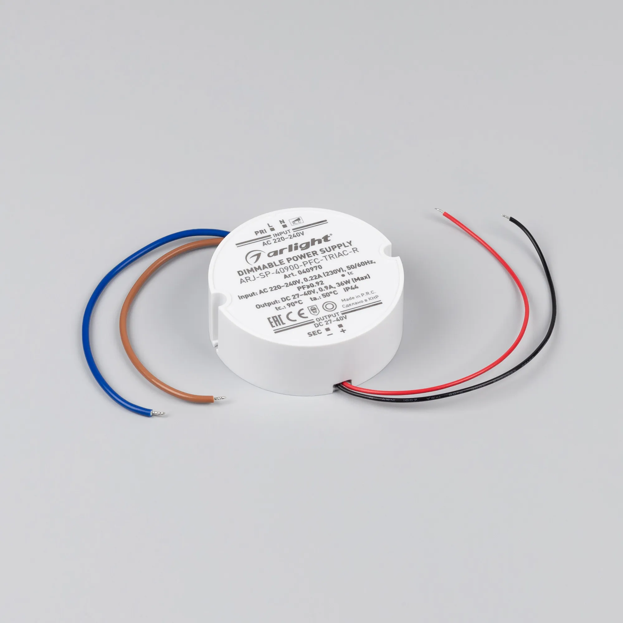В магазине Мельковский Свет Вы можете купить "Блок питания ARJ-SP-40900-PFC-TRIAC-R (36W, 27-40V, 900mA) (Arlight, IP44 Пластик, 5 лет)"