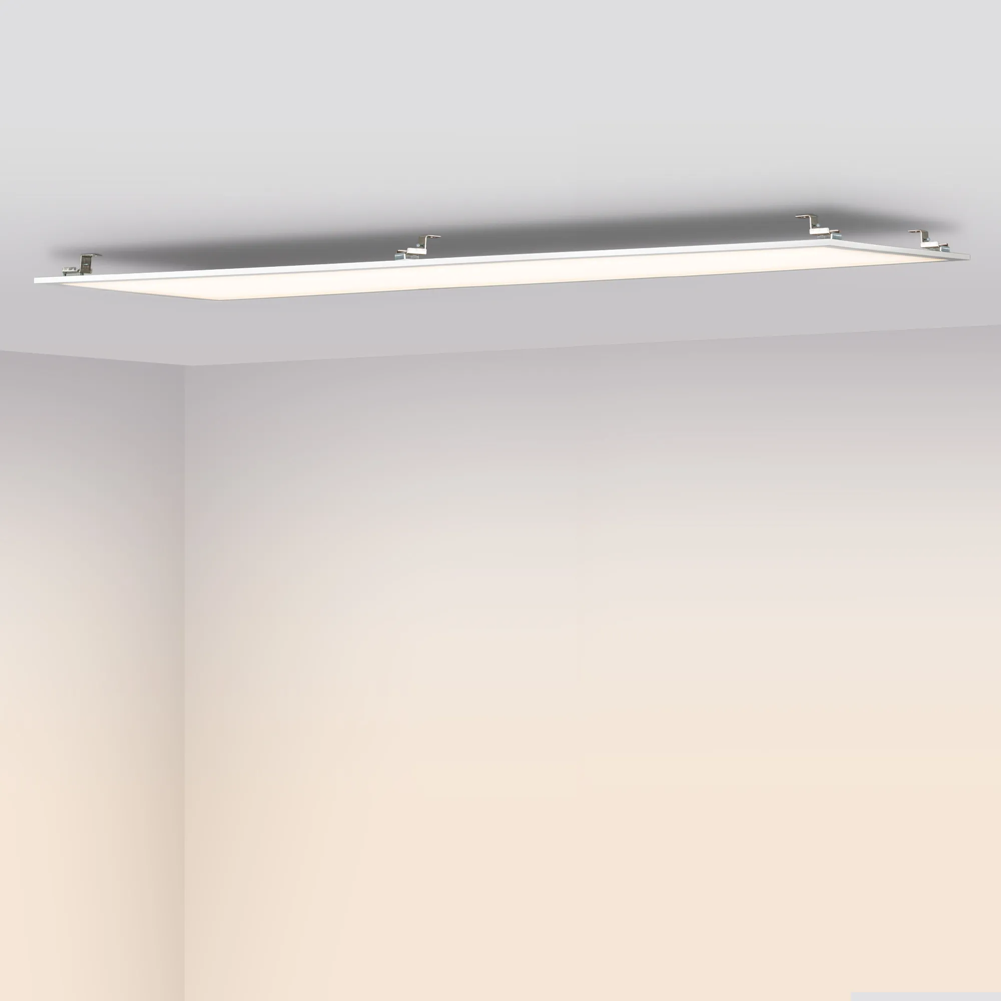 Светодиодная панель с торцевой заcветкой. Мощность 40 Вт, св. поток 3880 лм, 97 лм/Вт, дневной 4000 K, CRI>80, угол 120°, напряжение питания 230 В. Белый квадратный корпус из алюминия, экран PS, LGP PMMA, степень защиты IP40. Размер (Д×Ш×В) 1195×295×10,4 мм. Монтаж встраиваемый, установочное отверстие длина 1175 мм, ширина 275 мм. Драйвер 34.5-57.5 В, 700 мА, пульсация <5%.
