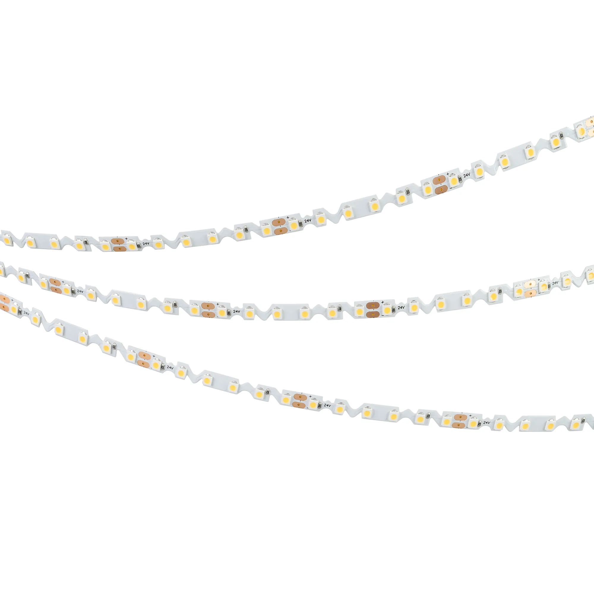 Гибкая светодиодная лента RZ серии A120 с фигурной платой в форме волны, легко изгибается на плоскости. Светодиоды SMD 2835, 120 шт/м, белая плата шириной 6 мм, скотч 3М. Цвет ТЕПЛЫЙ 3500K, индекс цветопередачи CRI>90, угол 120°. Питание 24 В, мощность 9.6 Вт/м (48 Вт на 5 м). Размеры 5000х6х1.3 мм. Мин. отрезок 50 мм, 6 светодиодов. Цена за 1 м. Обязательна установка на профиль.