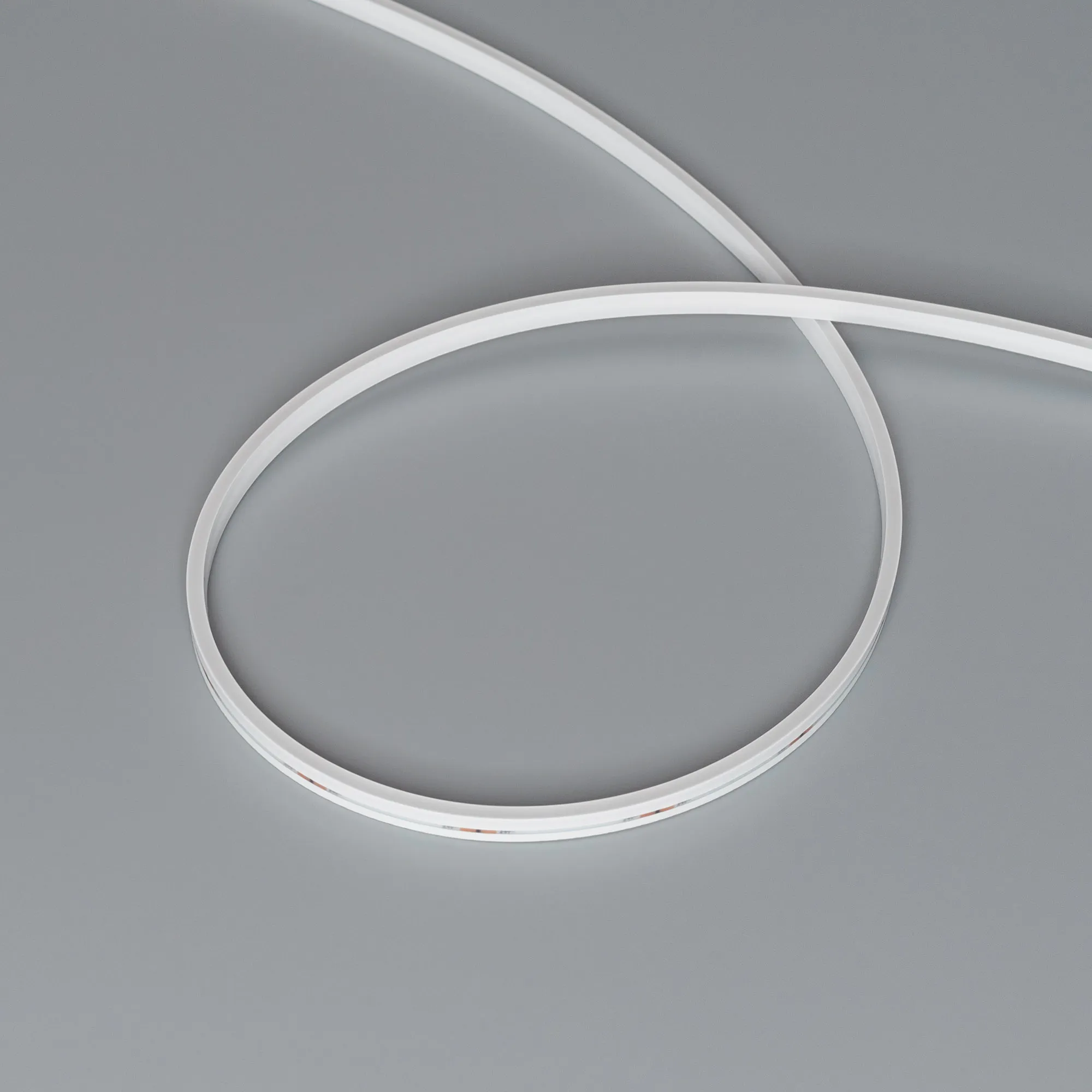 Гибкая герметичная лента (неон серии MOONLIGHT), сечение 3×6 мм. Светодиоды SMD 2216 196 шт/м. Цвет свечения ТЁПЛЫЙ (2700 К), индекс цветопередачи CRI>90, световой поток 170 лм/м, угол излучения 112°. Мощность 7.2 Вт/м, питание 24 В. Класс пылевлагозащиты IP54. Размеры 5000×3×6 мм. Мин. отрезок 35.7 мм. Горизонтальный изгиб SIDE, минимальный радиус изгиба 30 мм. Кабель питания длиной 500 мм, вывод с двух сторон вдоль линии сечения неона. Катушка 5 м. Цена за 1 м. Гарантия 3 года.