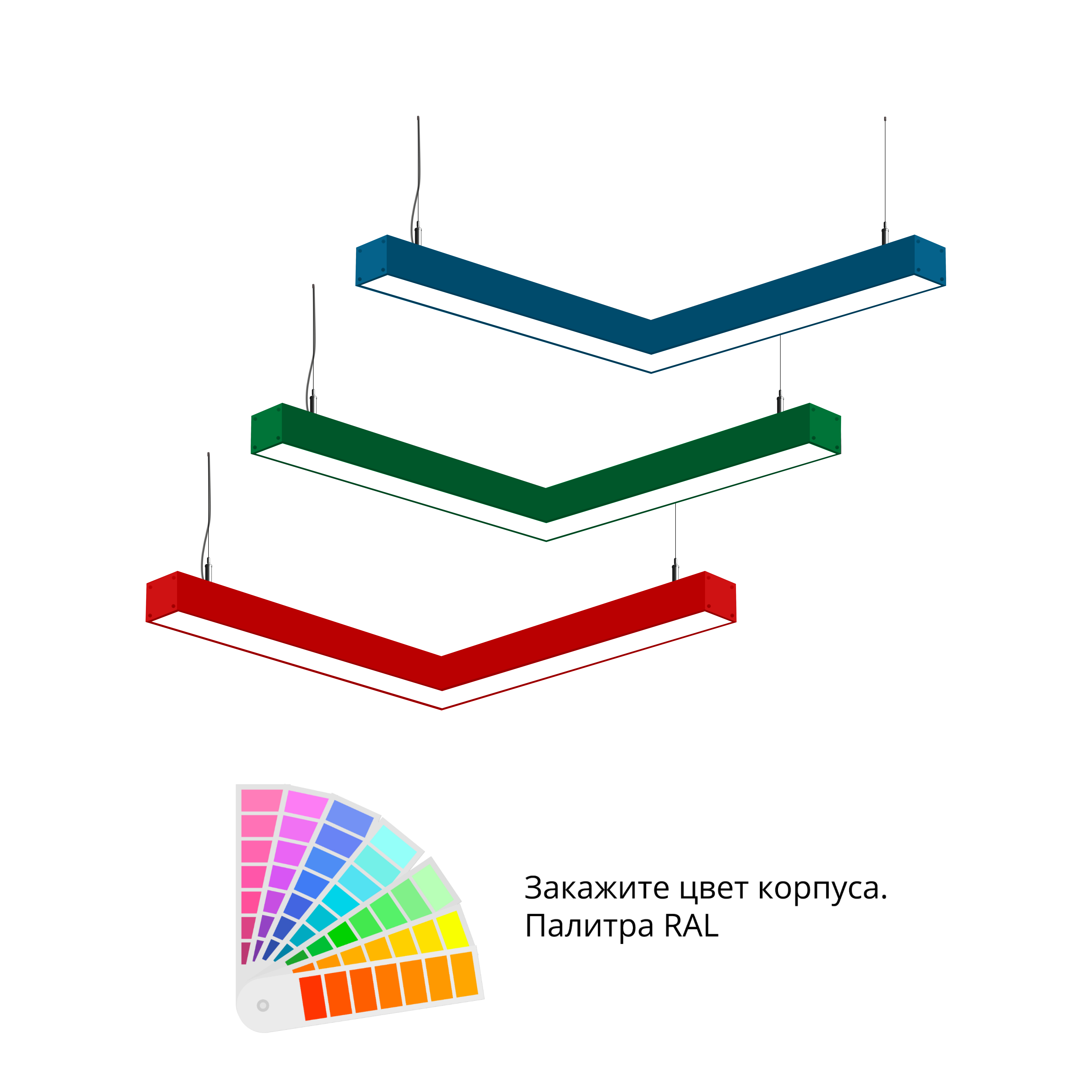 Светодиодный фигурный светильник MS-CORN L-образный 120гр. размер профиля 50х50mm длиной 1000х100mm мощностью 40W. Светильник собирается в алюминиевом корпусе с матовым рассеивателем, который дает равномерную засветку по всей площади.