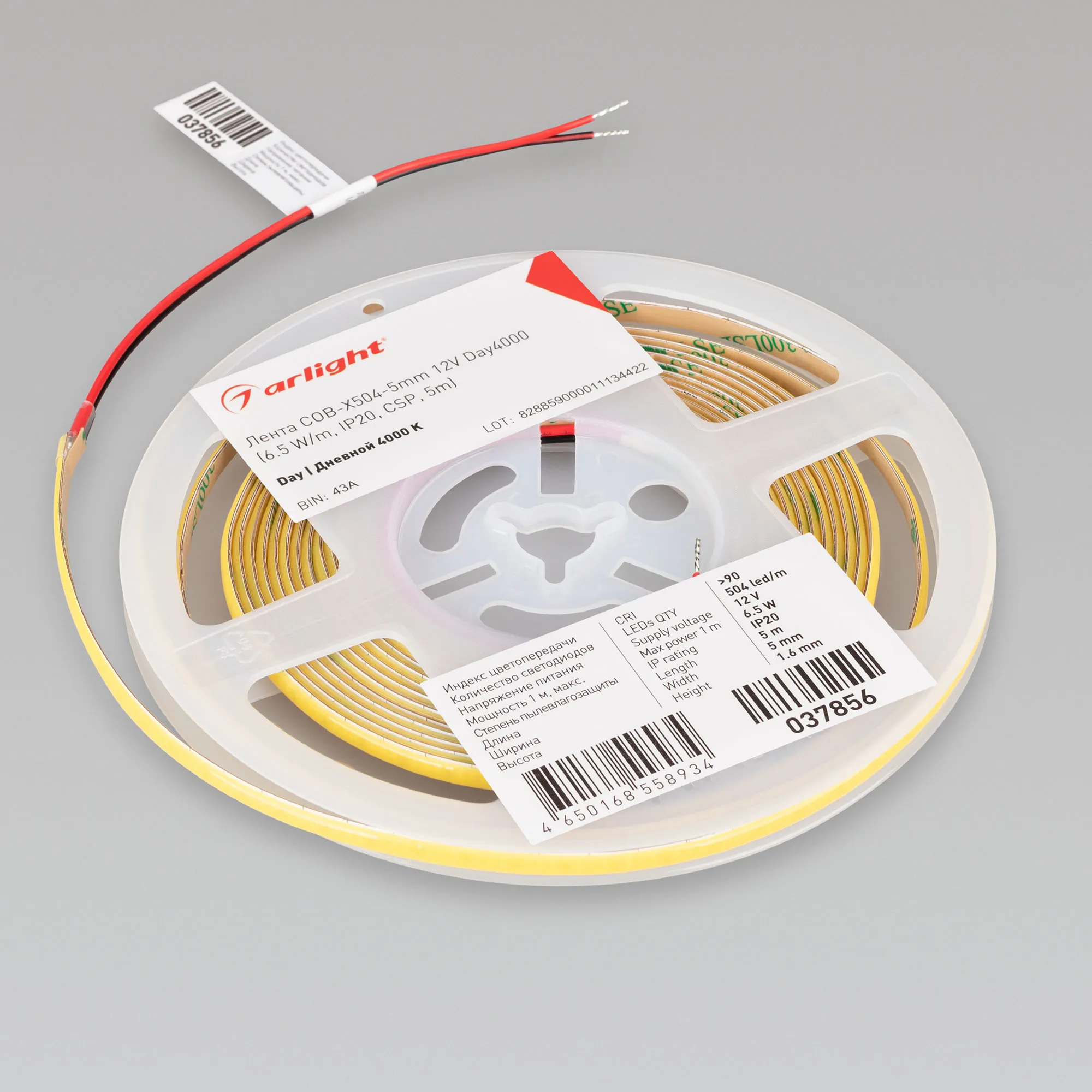 Лента светодиодная COB-X504-5mm 12V Day4000 (6.5 W/m, IP20, CSP, 5m) (Arlight, -)