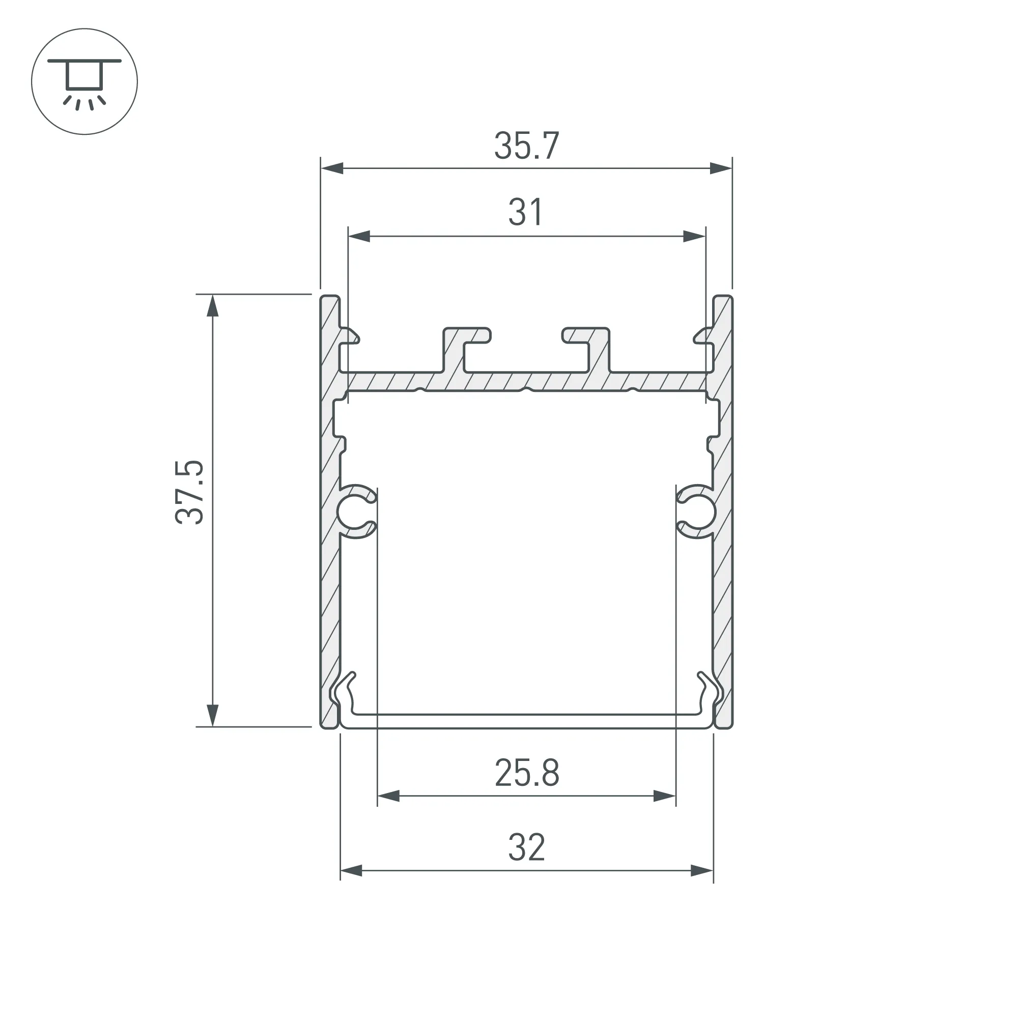 Алюминиевый анодированный профиль для светодиодных лент и линеек. Цвет - черный. Габаритные размеры (L×W×H): 3000x36x38 мм. Ширина площадки для ленты 31 мм. Экраны, заглушки и другие аксессуары приобретаются отдельно. Цена за 1 метр.