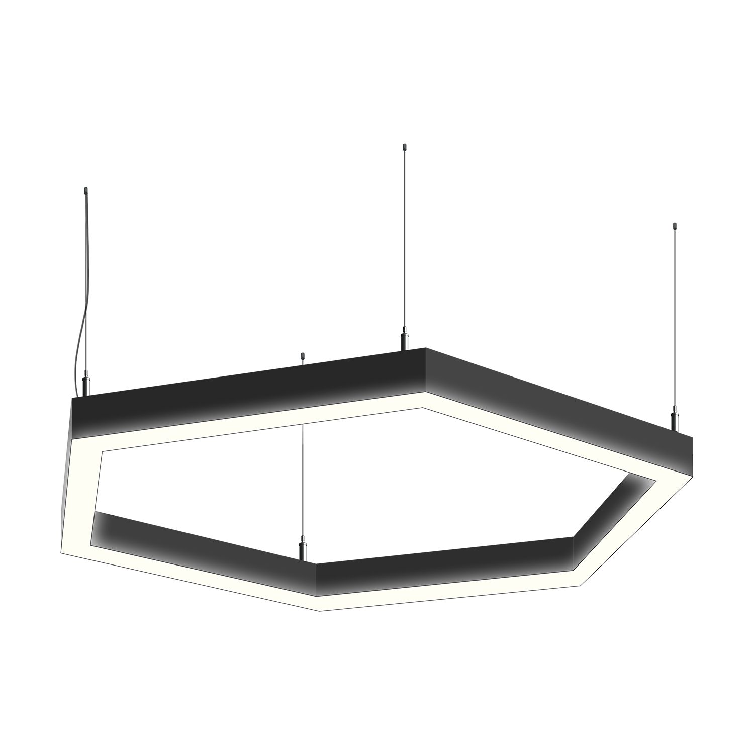 Cветодиодный фигурный светильник MS-HEX-O Шестиугольник размер профиля 50x50мм длиной 6х250мм мощностью 60W. Светильник собирается из алюминиевого основния с матовым рассеивателем, который дает равномерную засветку по всей площади.