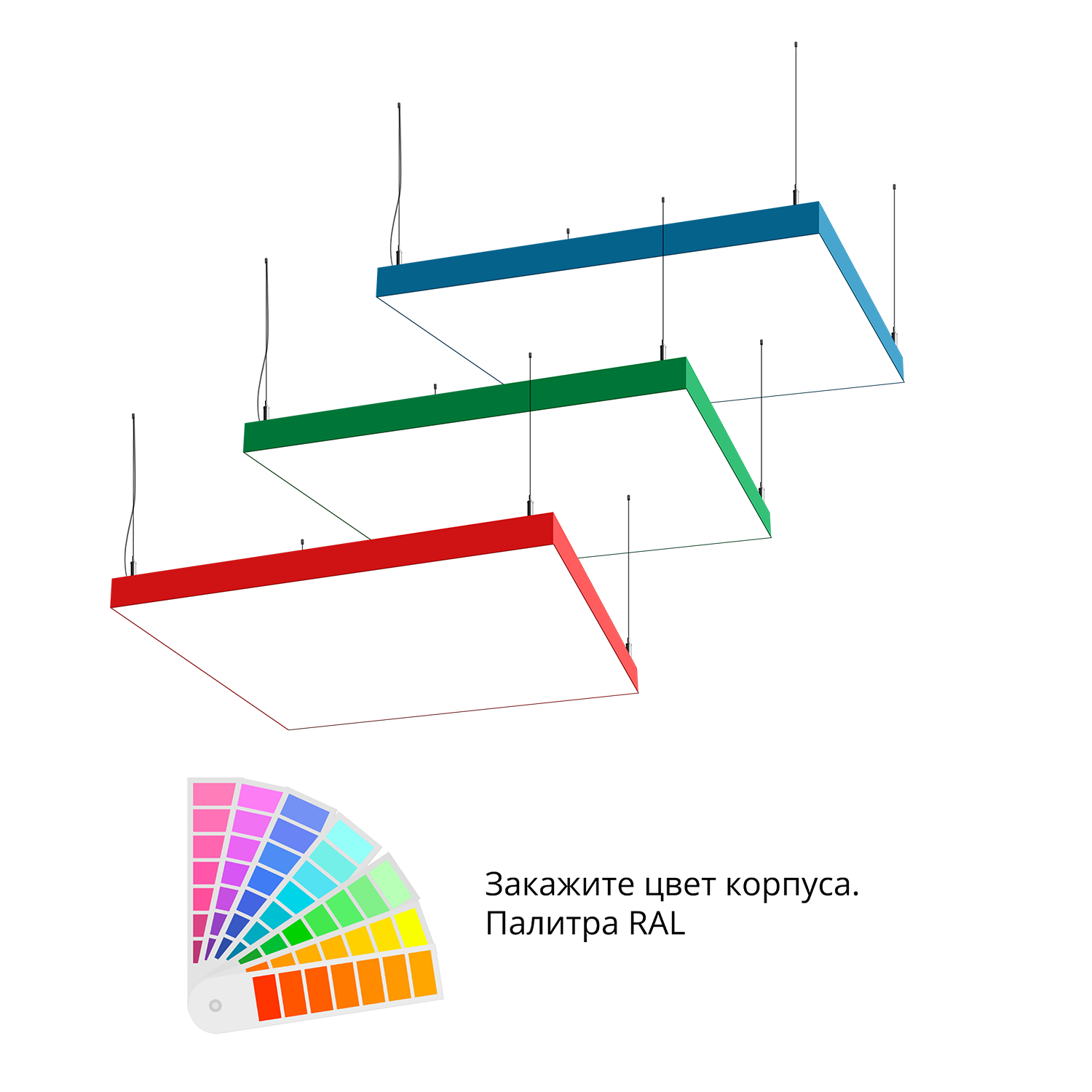 - Светильники доступны в базовых цветах: черный/серый/белый, дополнительно могут быть окрашены в любом цвете палитры RAL (уточняется у менеджера).