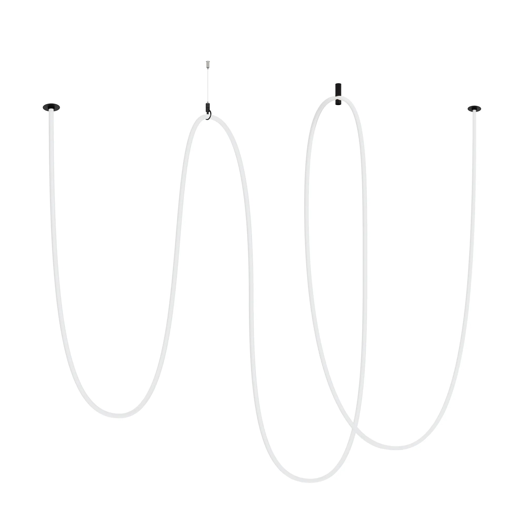 Подвесной светильник. Мощность 110 Вт, св. поток 5960 лм, 54 лм/Вт, тёплый 3000 K, CRI>90, угол 360°, напряжение питания 230 В. Черный круглый корпус из стали, силиконовая герметичная лента, степень защиты IP20. Размер: диаметр утапливаемой части чаши 64 мм, высота чаши с утапливаемой частью без вывода под неон 40 мм, общая высота чаши 57 мм, диаметр чаши с фланцем 100 мм, диаметр силиконовой герметичной ленты 18 мм, длина силиконовой герметичной ленты 10000 мм. Монтаж встраиваемый, глубина установки 55 мм, диаметр установочного отверстия 70 мм. Блок питания 24 В, 2500 мА, пульсация <5% (2 шт.).