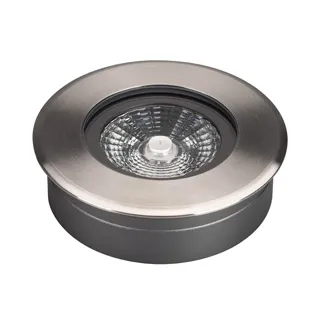 Встраиваемый светодиодный светильник для грунта и пола. Мощность 9Вт, угол освещения 30°, световой поток 475лм, цвет ТЕПЛЫЙ 3000К, CRI(Ra)>80. Круглый влагозащищенный корпус IP67, внешняя рамка из нержавеющей стали AISI 316. Экран закалённое стекло. Питание 24V, 9Вт. Размер Ø130x38мм. Установка в отверстие Ø118x35мм. ВНИМАНИЕ! Светильник не поддерживает регулирование светового потока ШИМ. Комплект установки в грунт/пол в комплекте,