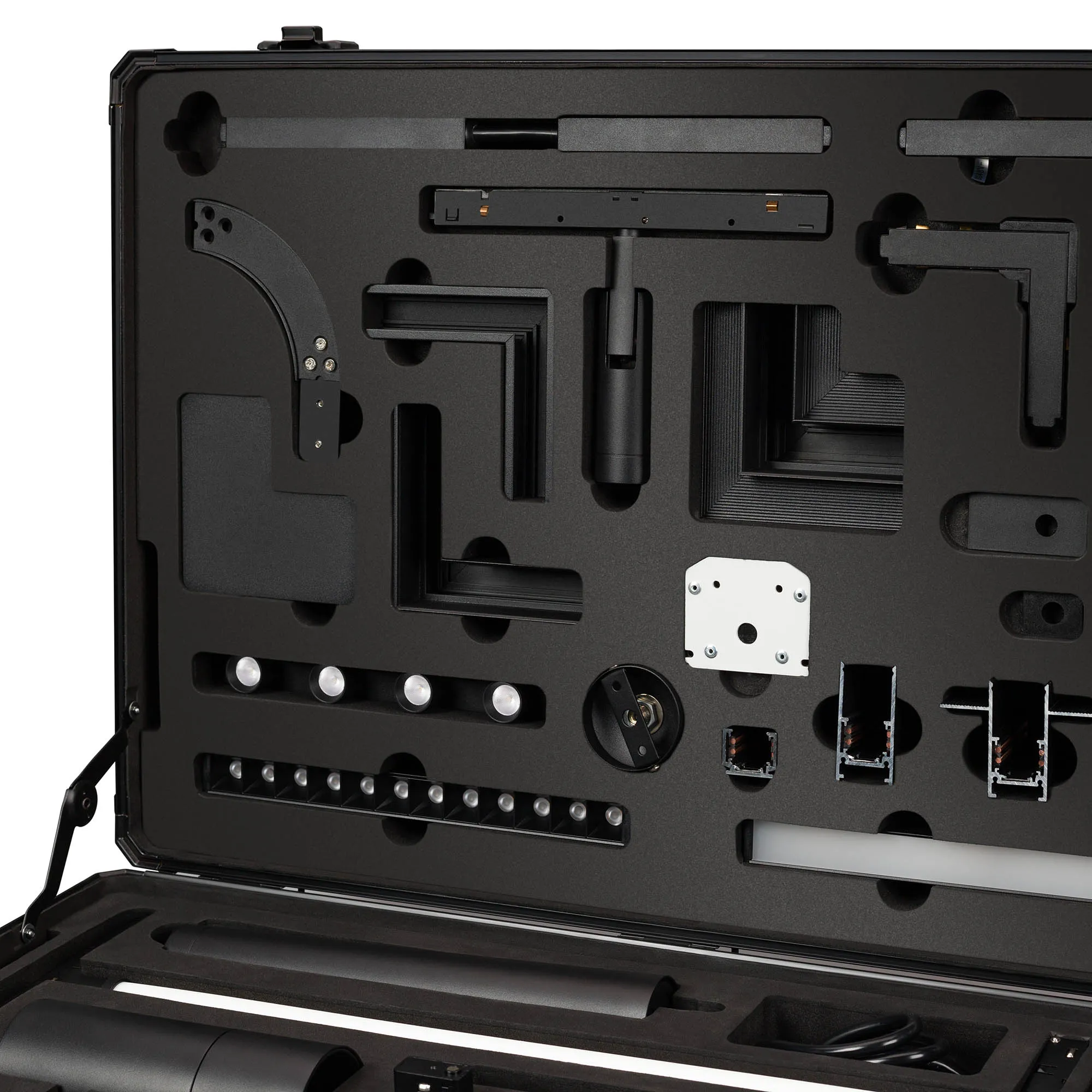 В комплекте демо-кейс, все виды треков, светильники, аксессуары.