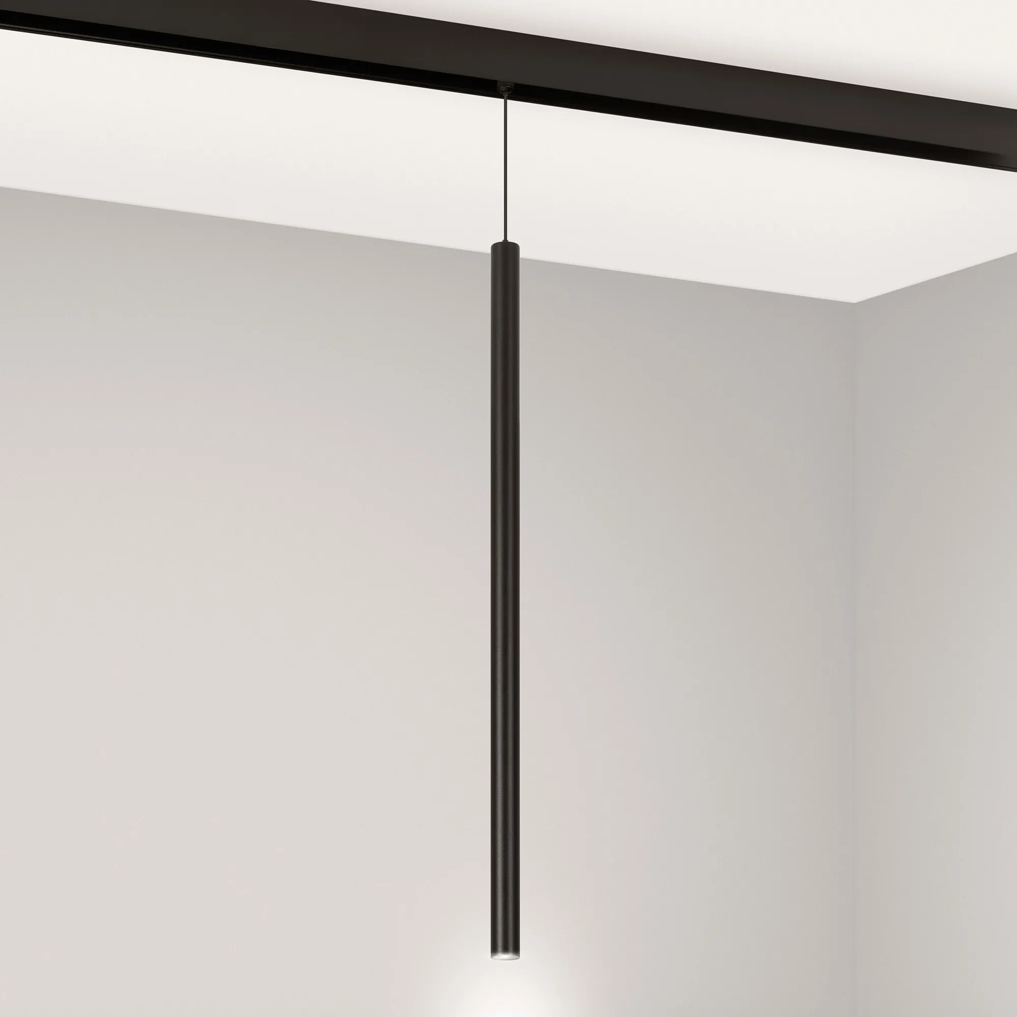 Светильник для магнитных треков MAG-Orient. Мощность 3 Вт, св. поток 150 лм, 50 лм/Вт, 4000 K, CRI>80, угол 20°, Черный цилиндрический корпус из металл, степень защиты IP20. Размер: длина 500 мм, диаметр 20 мм. Длина подвеса 1000мм. Подвес регулируемый.