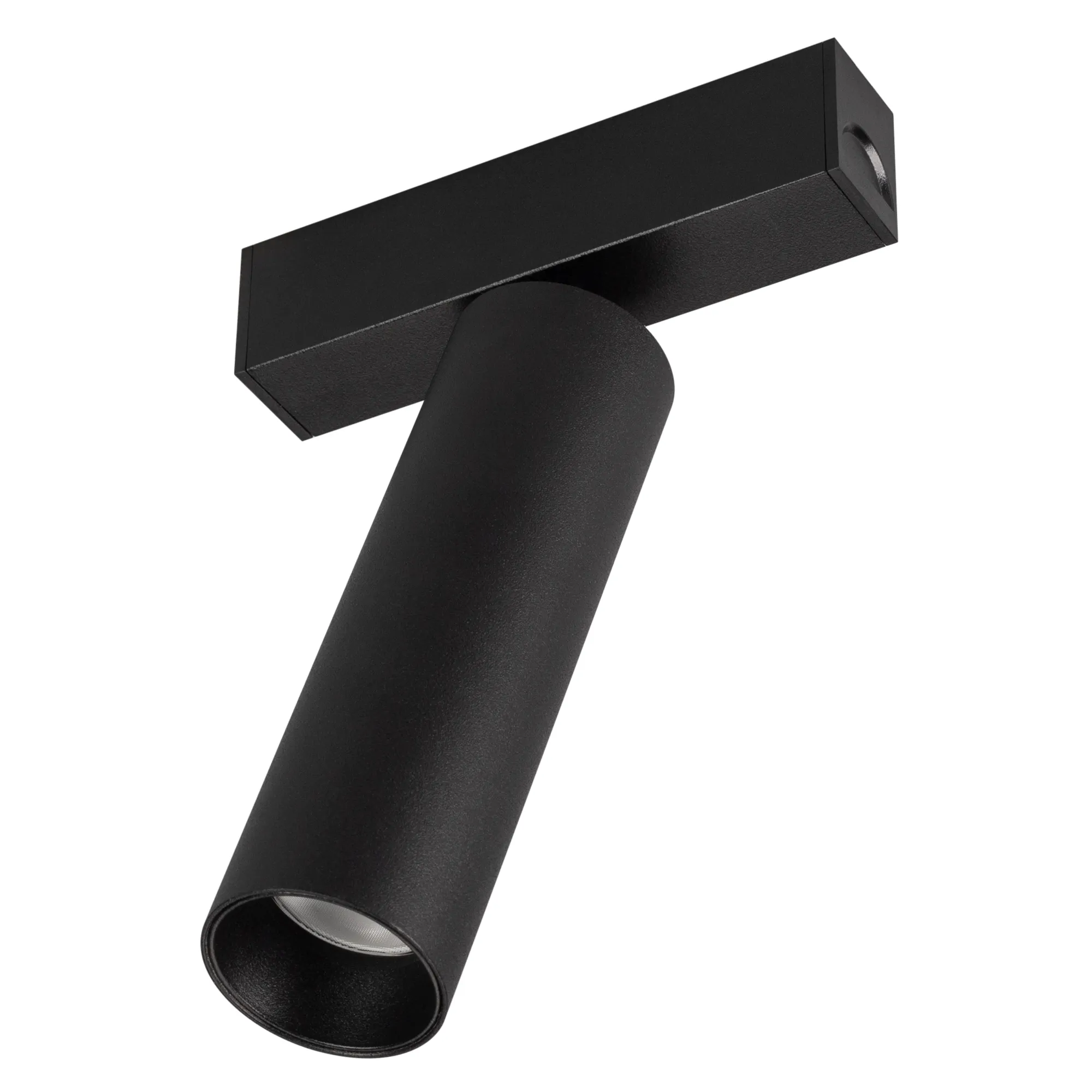 Светильник поворотный для магнитных треков шириной 25 мм с управлением DALI, мощность 12 Вт. Цвет свечения ТЕПЛЫЙ 3000K, световой поток 840 лм, угол 30°, CRI>90. Корпус прямоугольный, металл, цвет черный, IP20. Размеры LxWxH 100x20x150 мм. Входное напряжение DC24V, мощность 12 Вт. Драйвер AC230V/DC24V поставляется отдельно. Диаметр светоизлучающего модуля 35 мм.