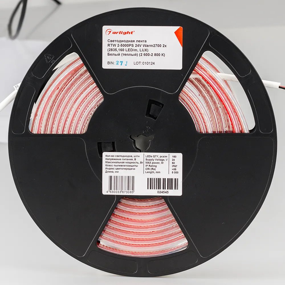 В магазине Мельковский Свет Вы можете купить "Лента светодиодная RTW 2-5000PS 24V Warm2700 2x (2835, 160 LED/m, LUX) (Arlight, 12 Вт/м, IP67)"