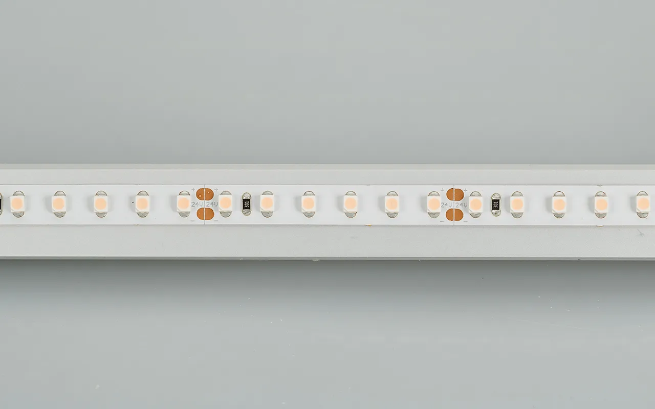 Гибкая лента LUX, светодиоды 2X smd 3528, 120шт/м (600шт на 5м), белая плата 8мм, скотч 3М. Цвет БЕЛЫЙ 5800-6500K. Питание 24В, мощность 9,6 Вт/м (48 Вт на 5м), угол 120°. Размеры 5000х8х1,8мм. Мин.отрезок 50мм (6 LED). Цена за 1м.
