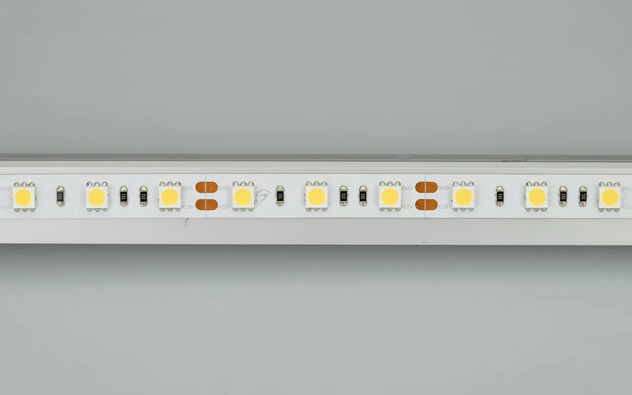 Гибкая лента LUX, светодиоды smd 5060, 60шт/м (300шт на 5м), белая плата 10мм, скотч 3М. Цвет ДНЕВНОЙ 3800-4200K. Питание 12V, мощность 14.4 Вт/м (72 Вт на 5м), угол 120°, цветопередача CRI>85. Размеры 5000х10x2.2мм. Мин.отрезок 50мм, 3 светодиода. Цена за 1м.