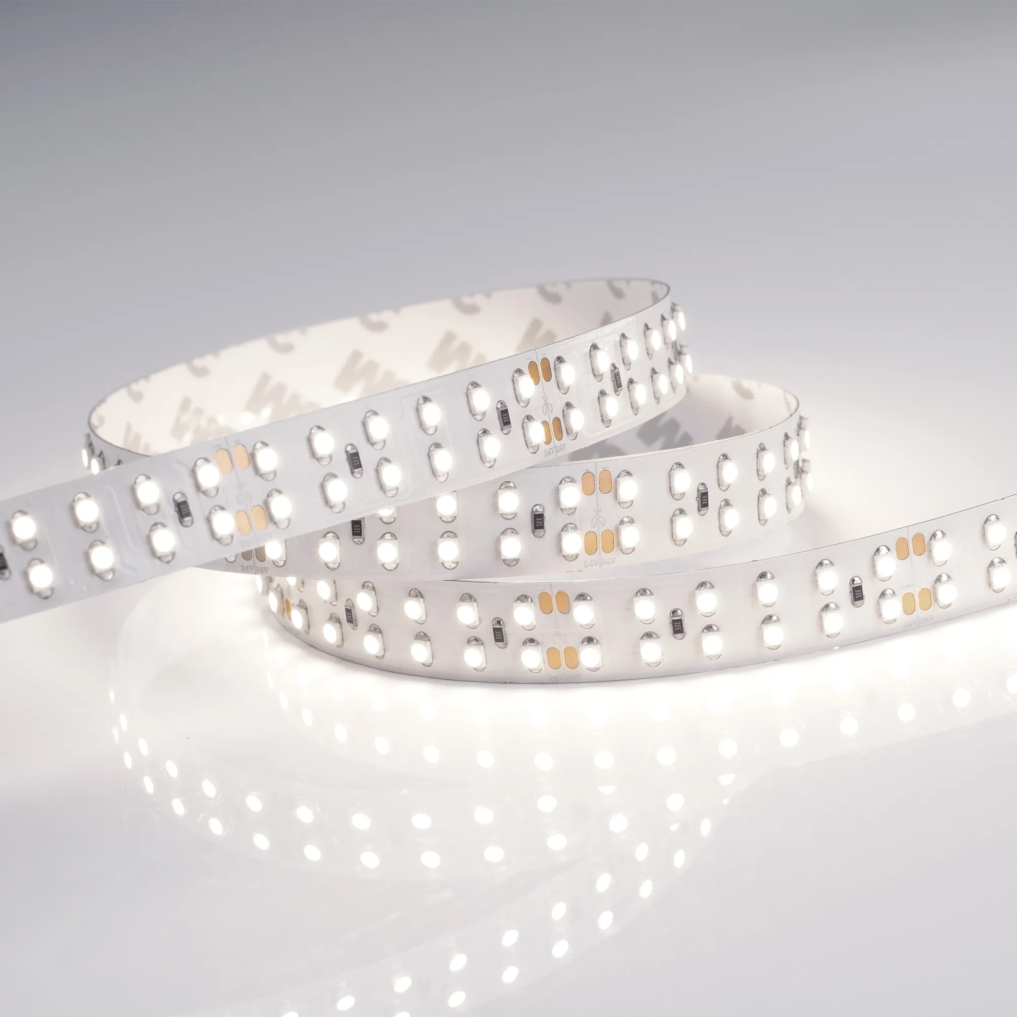 Широкая гибкая лента LUX, светодиоды 2x2 (2 ряда) smd 3528, 240шт/м (1200шт на 5м), белая плата 15мм, скотч 3М. Цвет БЕЛЫЙ ДНЕВНОЙ 3800-4200K. Питание 24В, мощность 19,2 Вт/м (96 Вт на 5м), угол 120°. Размеры 5000x15x2,4мм. Мин.отрезок 50мм (12 LED). Цена за 1м.
