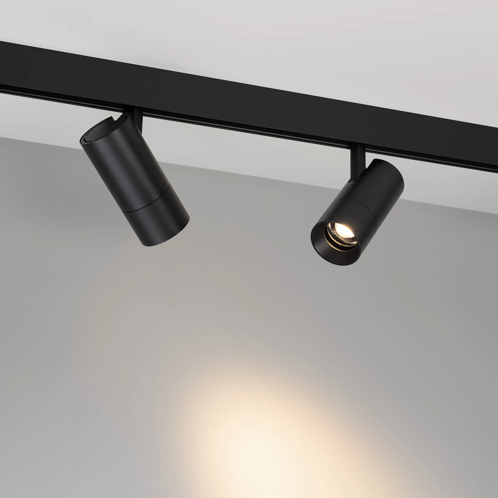 Светильник для магнитных треков MAG-ORIENT шириной 26 мм, с управлением по DALI. Мощность 15 Вт, св. поток 1100 лм, 73 лм/Вт, дневной 4000 K, CRI>94, угол 34-60°, напряжение питания 48 В. Черный фигурный корпус из металл, экран поликарбонат, степень защиты IP20. Размеры LxWxH 204x66x211 мм.