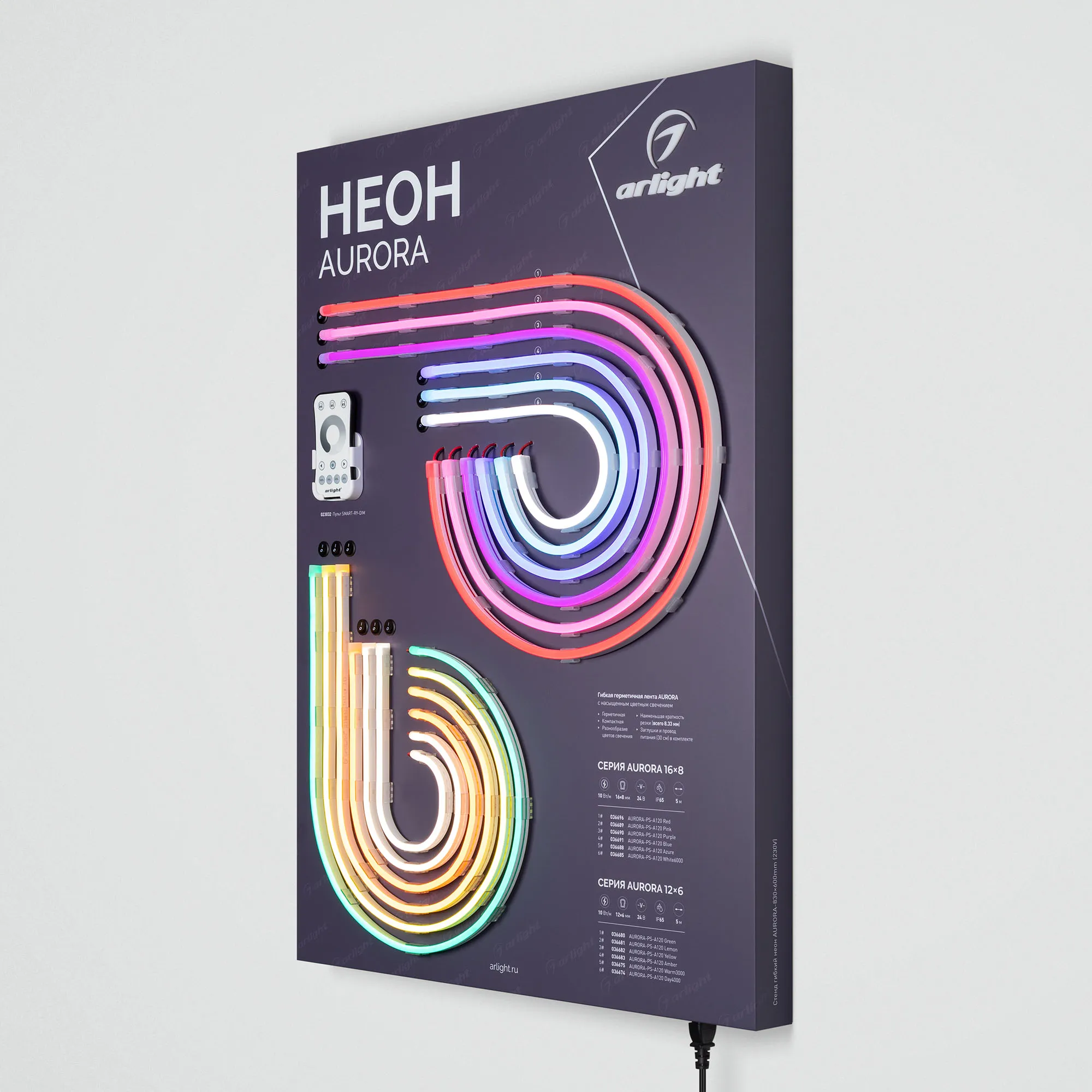 Наши специалисты знают все о продукции Arlight и с радостью помогут Вам выбрать комплектующие к товару "Стенд Гибкий Неон AURORA-830x600mm (230V) (Arlight, -)", или другие товары из раздела "Светодиодный декор".