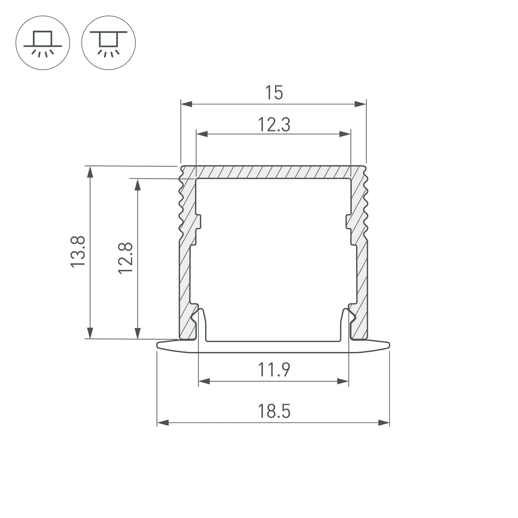 Алюминиевый анодированный микропрофиль для светодиодных лент и линеек. Цвет - черный RAL9005 (порошковая окраска). Габаритные размеры (L×W×H): 2000x15x13,8 мм. Ширина площадки для ленты 12,3 мм. Экраны, заглушки и другие аксессуары приобретаются отдельно. Цена за 1 метр.