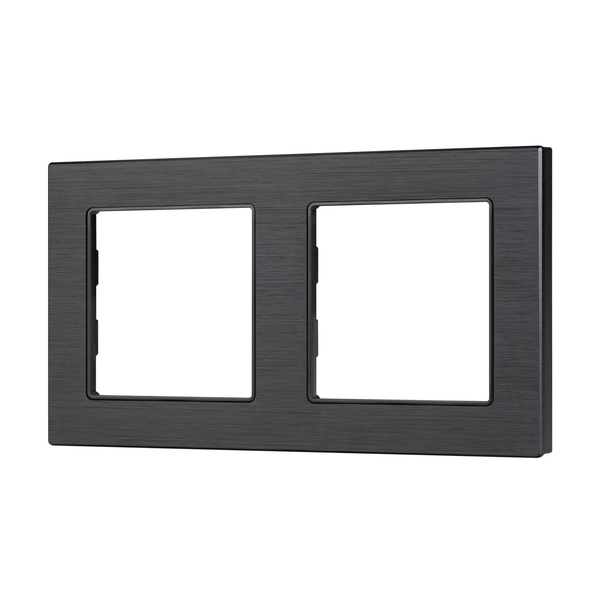 Рамка алюминиевая на 2 пост, под встраиваемый механизм (квадрат). Цвет - черный. Ориентации монтажа - горизонтальная.