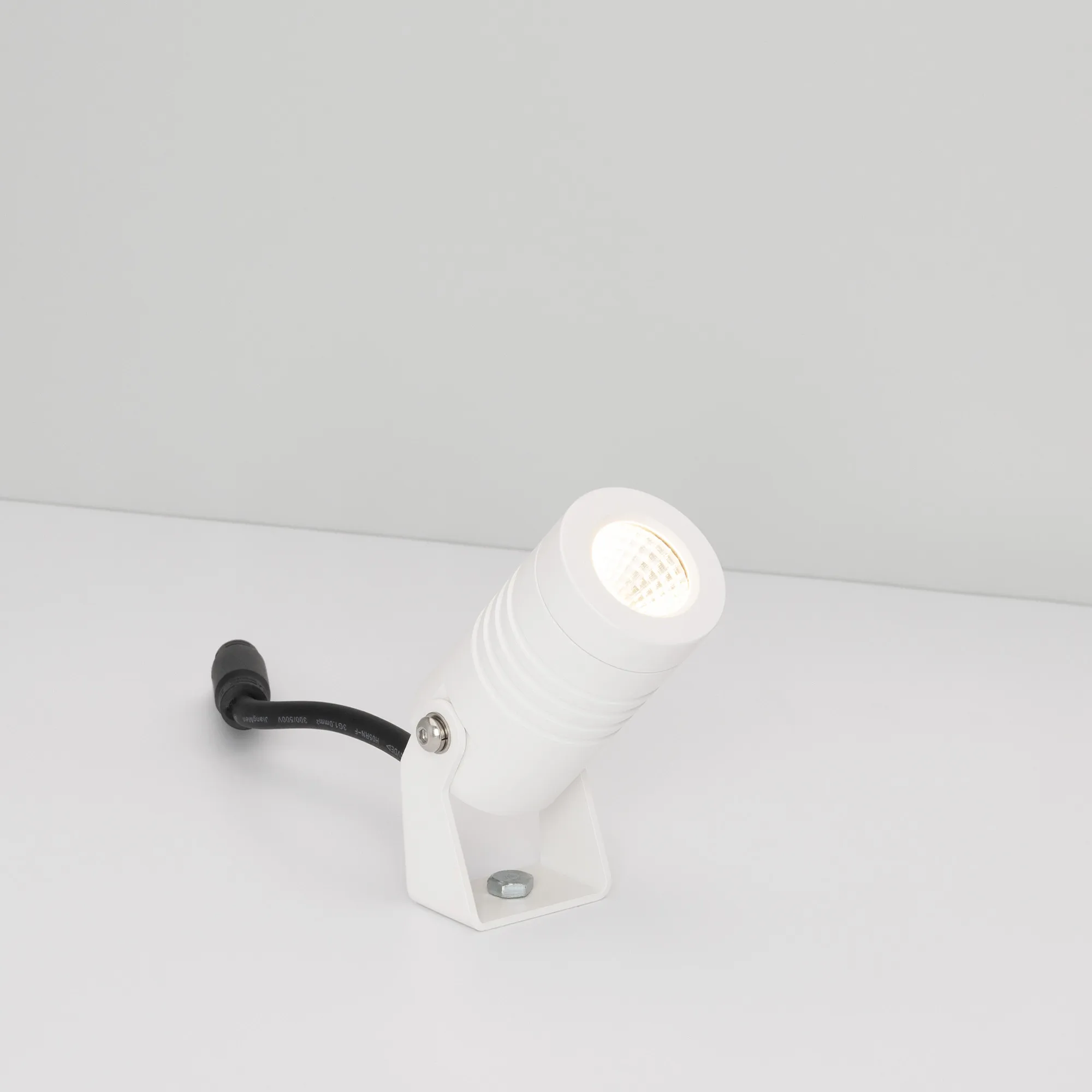 Уличный светодиодный прожектор, мощность 5Вт, угол освещения 25°. Цвет ДНЕВНОЙ 4000К, световой поток 310лм. Влагозащищенный корпус IP67 - белый алюминий, экран из закалённого стекла. Угол поворота корпуса в вертикальной плоскости 135°. Питание 230В, мощность 5 Вт. Размеры DxH -Ø42х77мм. В комплекте 1м провод.