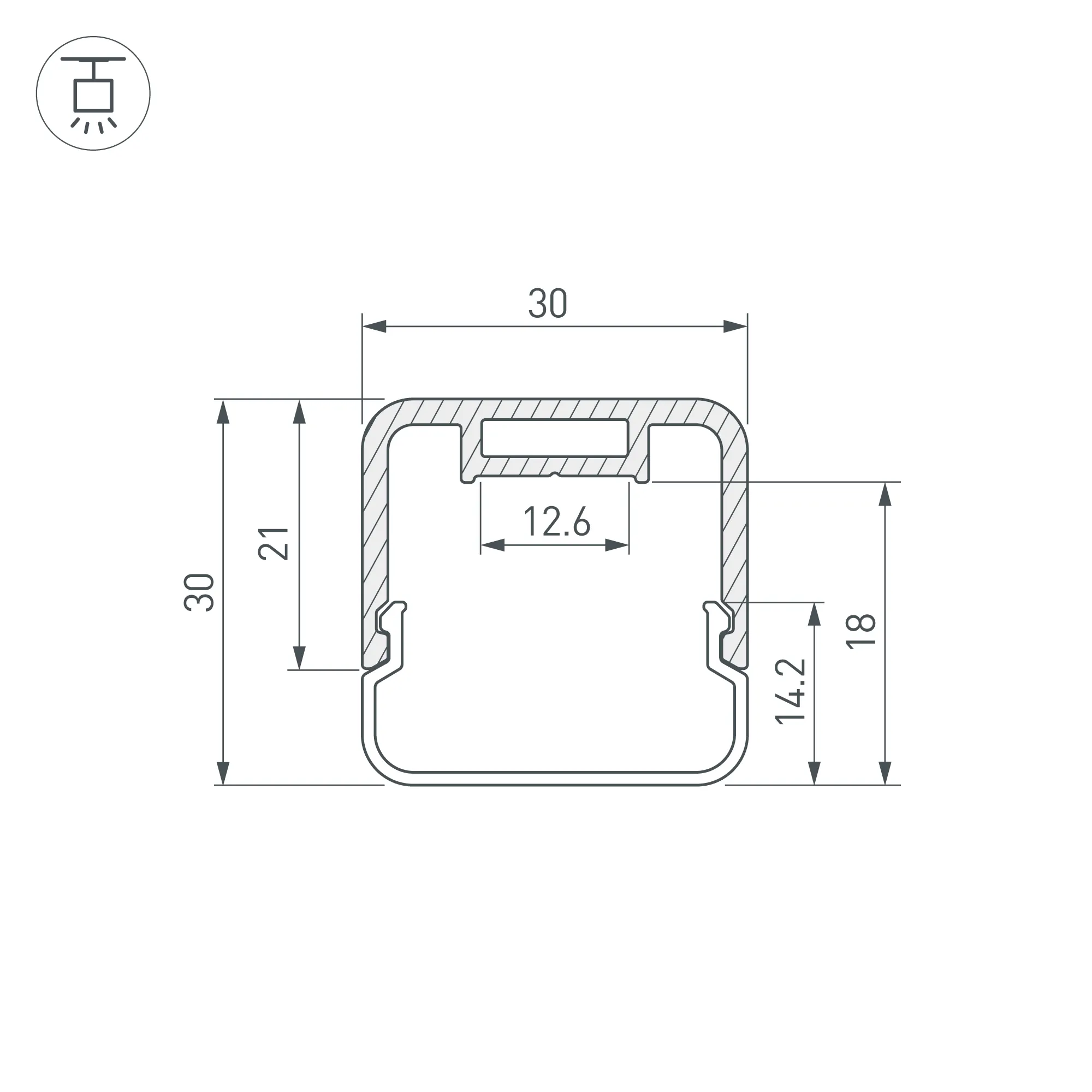 Комплект профиля с экраном и заглушками. Подвесной профиль со скругленными углами и объемным матовыми экраном из поликарбоната идеально подходит для основного освещения и создания дизайнерских светильников. Цвет - черный RAL9004 (порошковая окраска). Габаритные размеры (L×W×H): 2000x30x30 мм. Ширина площадки для ленты 12,6 мм. Аксессуары приобретаются дополнительно.