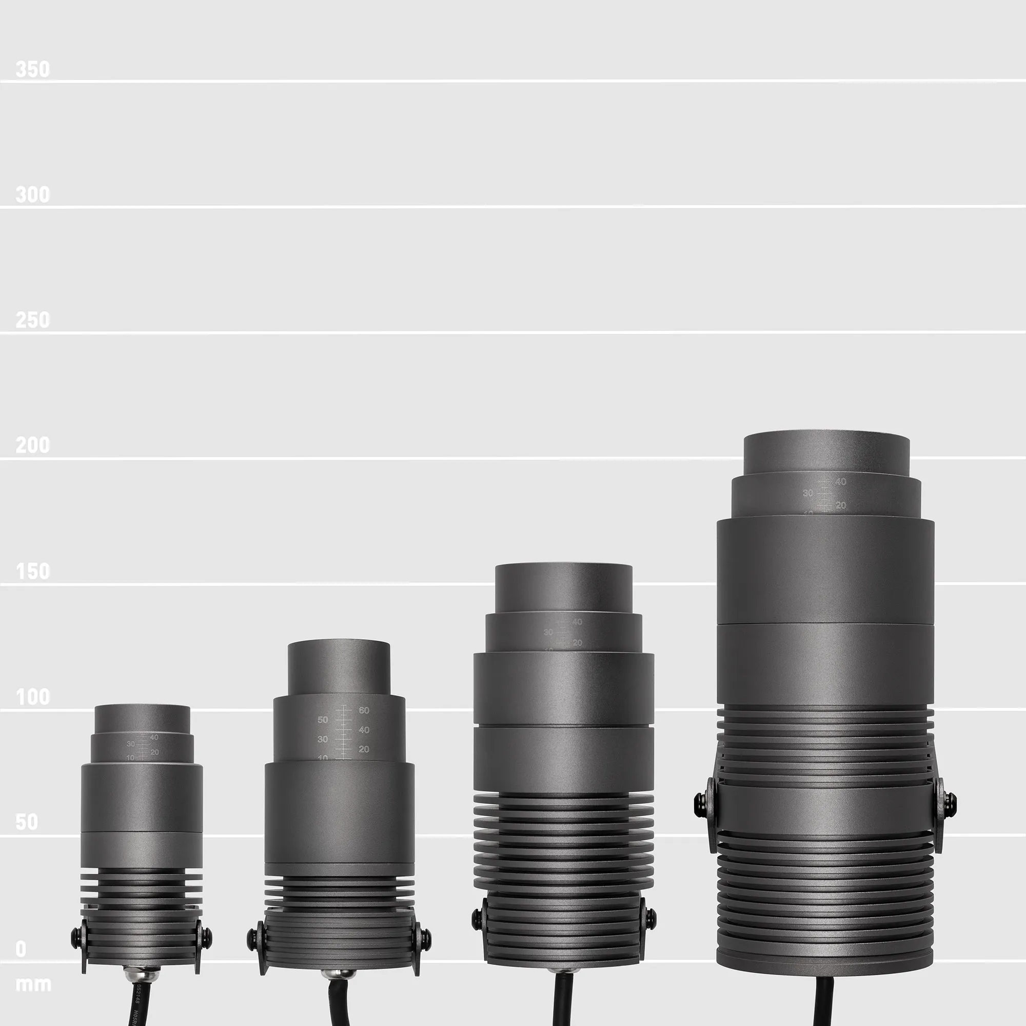 Уличный светодиодный прожектор, мощность 18Вт, регулируемый угол освещения 10-40°. Цвет ТЕПЛЫЙ 3000К, световой поток для угла 10° 500 для угла 40° 800лм. Влагозащищенный корпус IP67 - темно-серый алюминий, экран из закаленного стекла. Угол поворота корпуса в вертикальной плоскости 135°. Питание 230В, мощность 18 Вт. Размеры DxH - Ø75x150мм. В комплекте 1м провод.