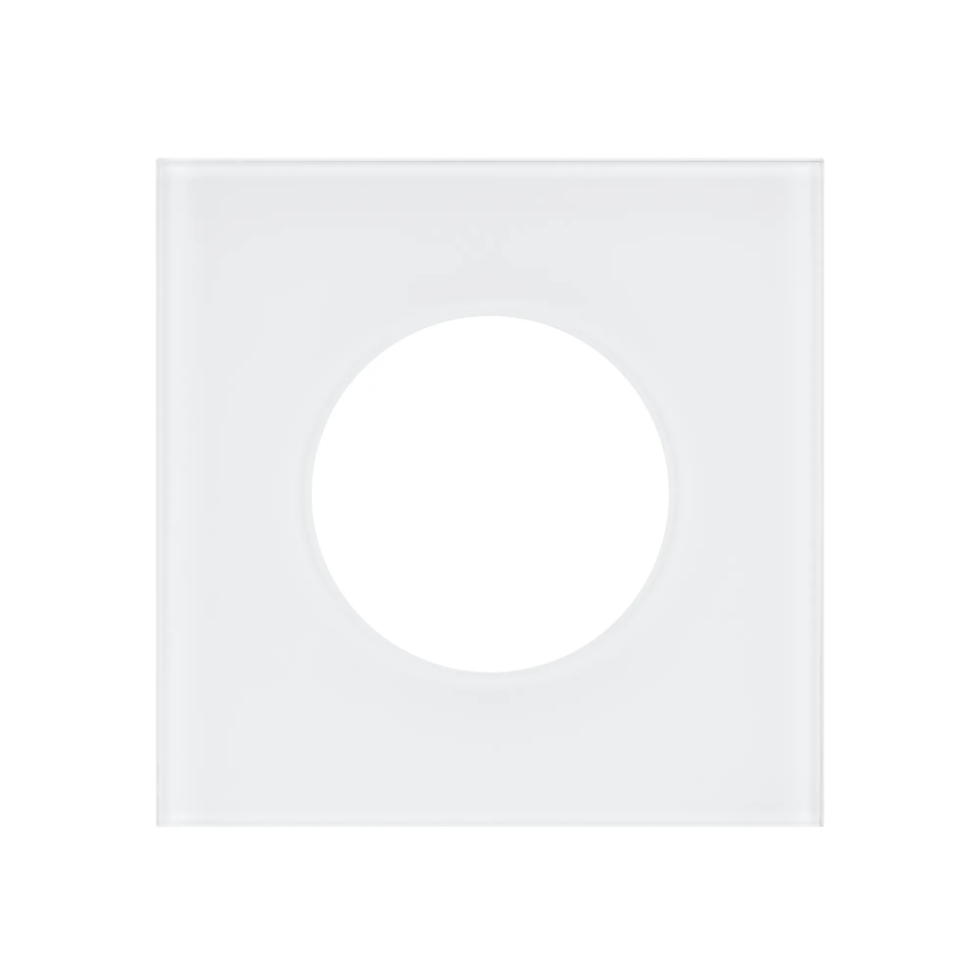 Рамка стеклянная на 1 пост, под встраиваемый механизм. Вырез под функциональную часть круг*. Цвет - белый. Ориентации монтажа - горизонтальная.