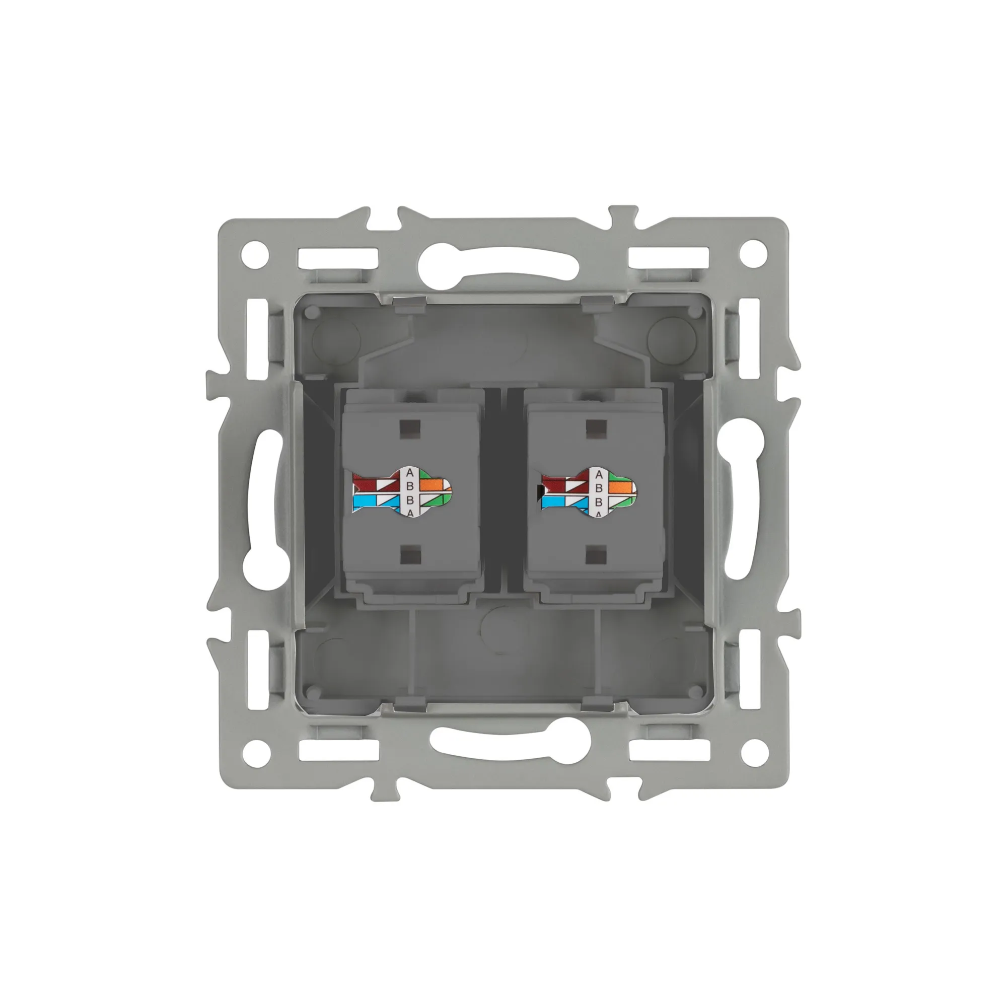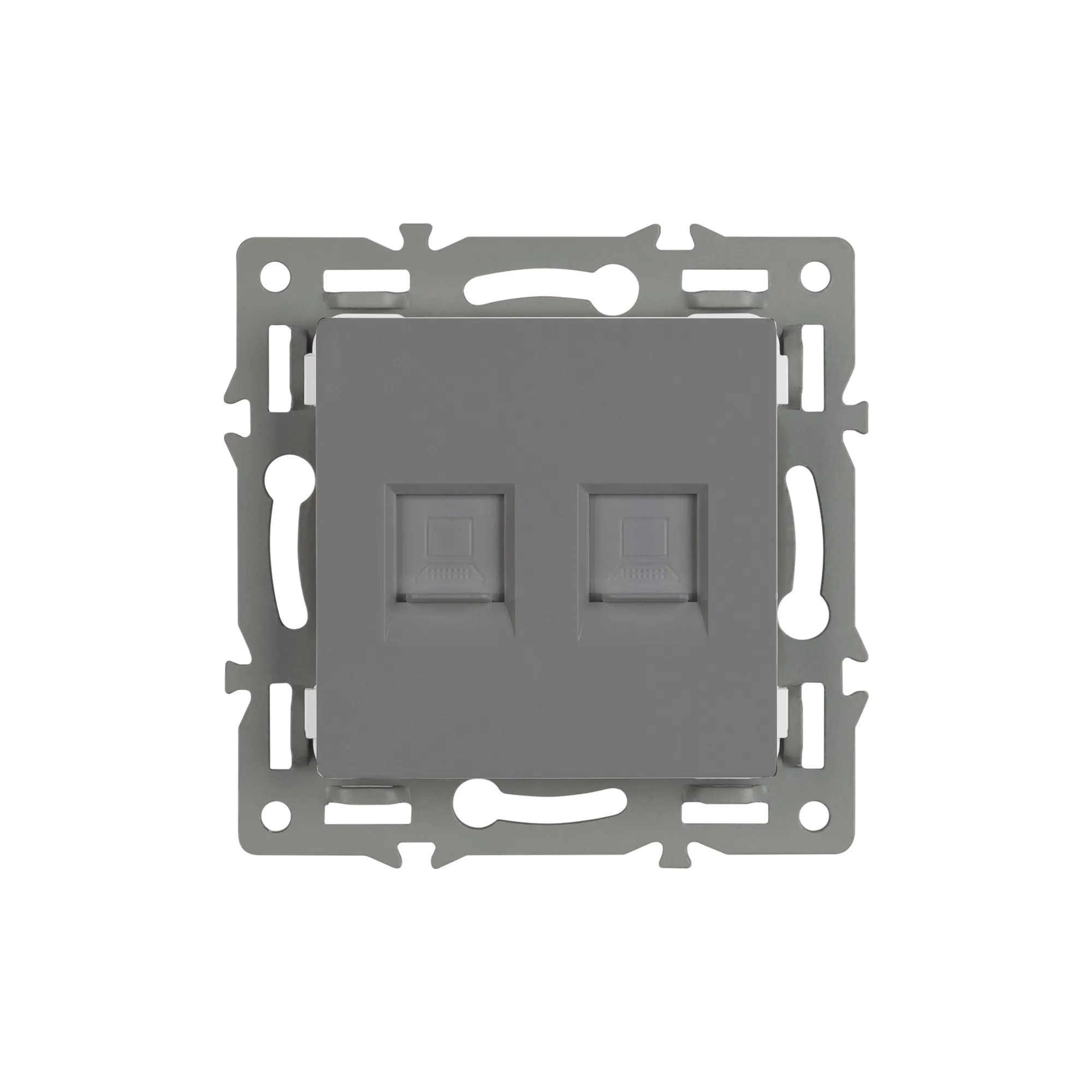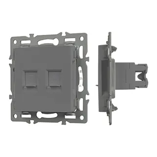 Механизм компьютерной розетки на 1 пост 2 слота 6-й категории (CAT6), с суппортом из алюминия. Цвет - серый. Степень пылевлагозащиты - IP20.