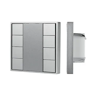 Встраиваемая кнопочная серая металлическая панель для работы по протоколу DALI-2. 8 кнопок свободного функционала. Назначение кнопок задается с мастер-контроллера серии DALI-LOGIC-x. Питание от шины DALI (4 мА). Габариты панели 80x80x26.6 мм.
