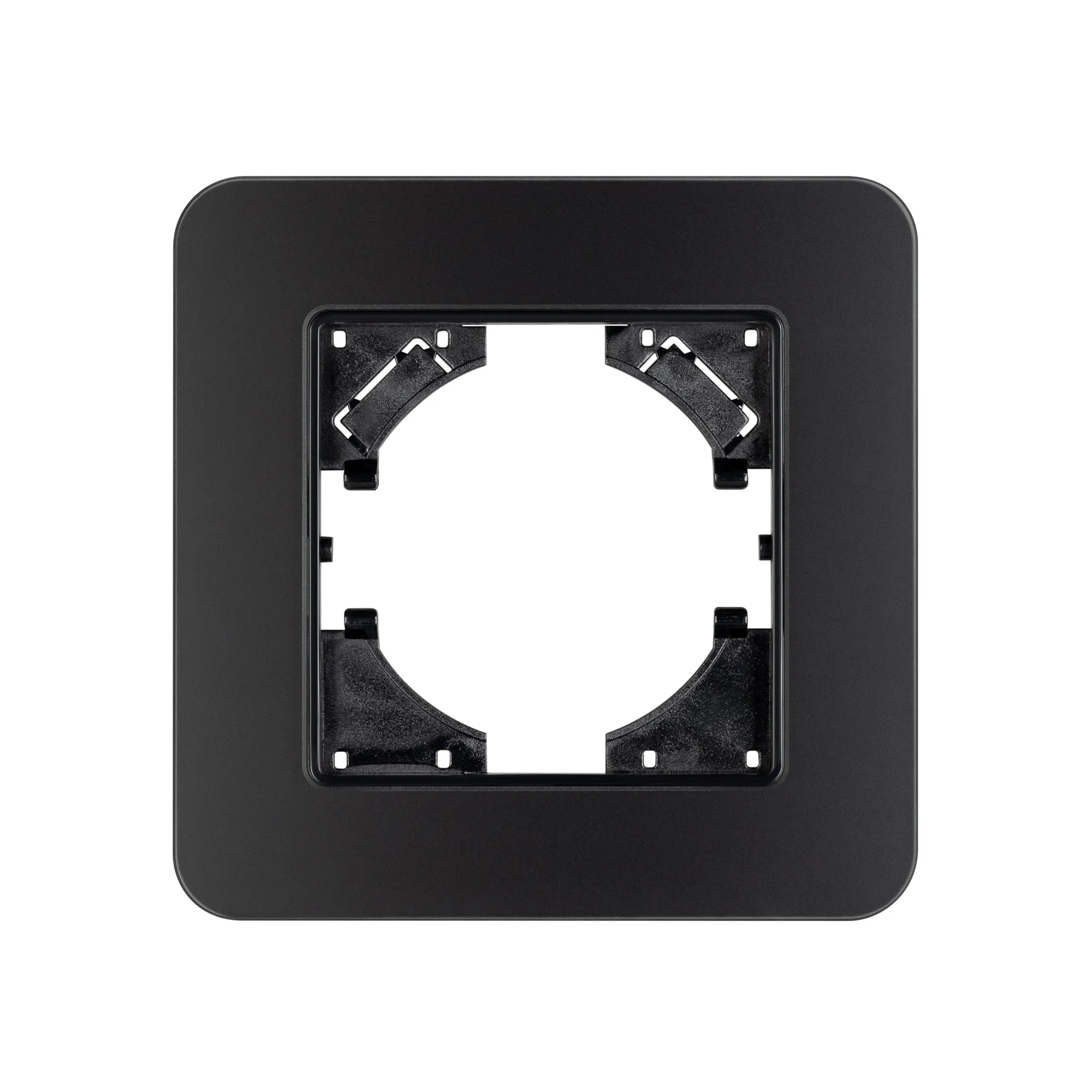 Рамка стеклянная на 1 пост, под встраиваемый механизм. Цвет - черный с Soft-Touch покрытием. Уровень герметичности IP20. Ориентация монтажа - горизонтальная (основным ориентиром служат посадочные выступы для накладки механизма).