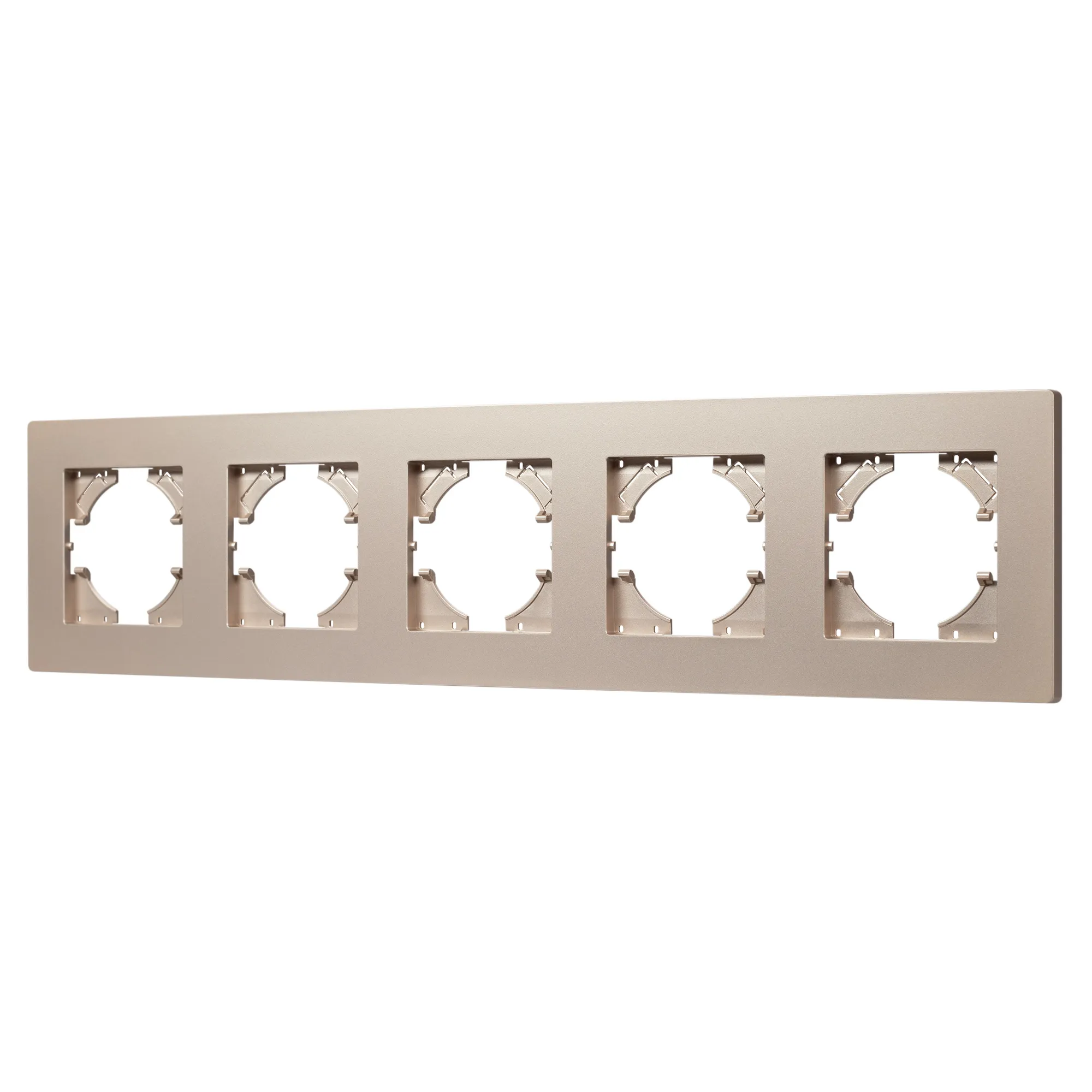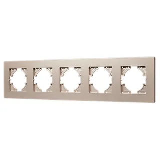 Рамка пластиковая на 5 постов, под встраиваемый механизм. Цвет - золотой. Уровень герметичности IP20. Ориентация монтажа - горизонтальная (основным ориентиром служат посадочные выступы для накладки механизма).
