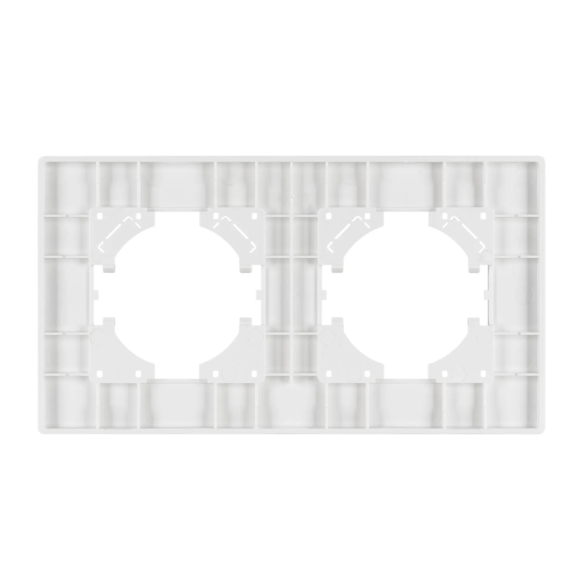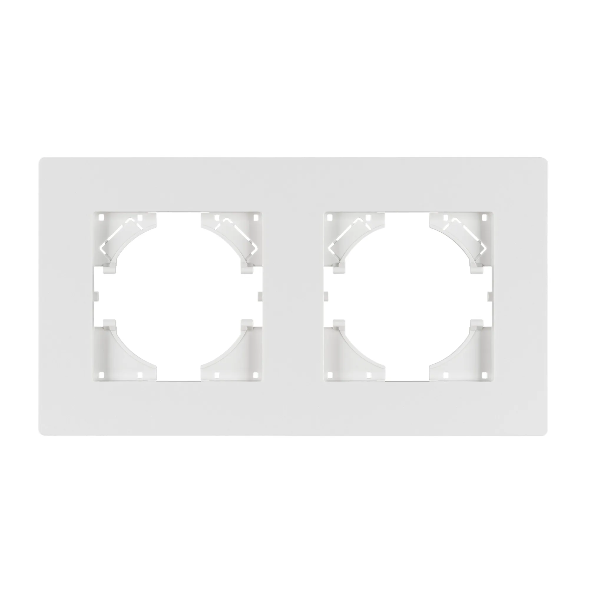 Рамка пластиковая на 2 поста, под встраиваемый механизм. Цвет - белый. Уровень герметичности IP20. Ориентация монтажа - горизонтальная (основным ориентиром служат посадочные выступы для накладки механизма).
