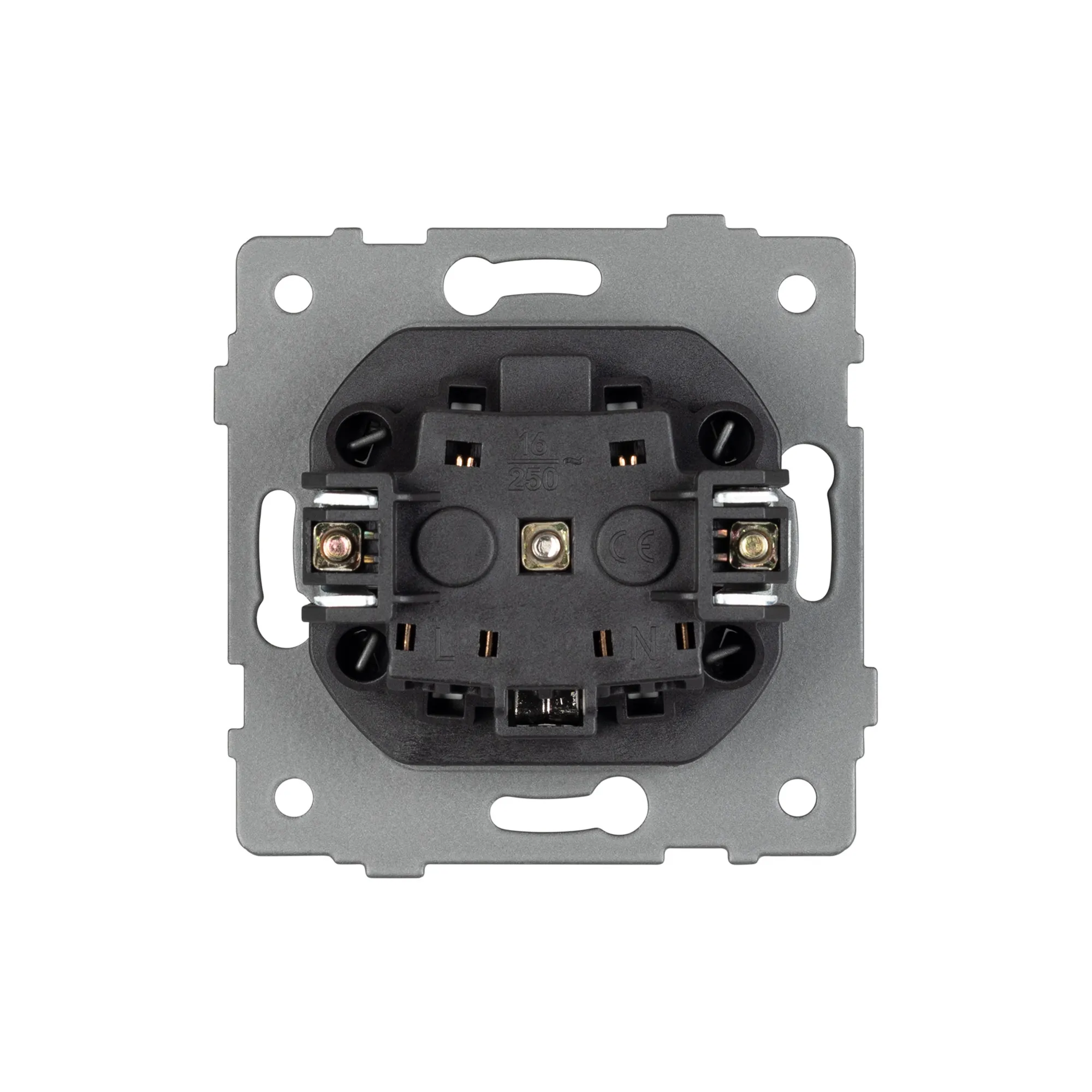 Механизм розетки с заземлением на 1 пост. Цвет - серый. Без фронтальной рамки. Уровень пылевлагозащиты IP20. Устанавливается в стандартный подрозетник.