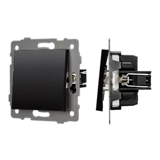 Механизм выключателя света клавишный на 1 пост 1 клавиша (непроходной). Цвет - черный. Без фронтальной рамки. Уровень пылевлагозащиты IP20. Выключатель устанавливается в стандартный круглый подрозетник.