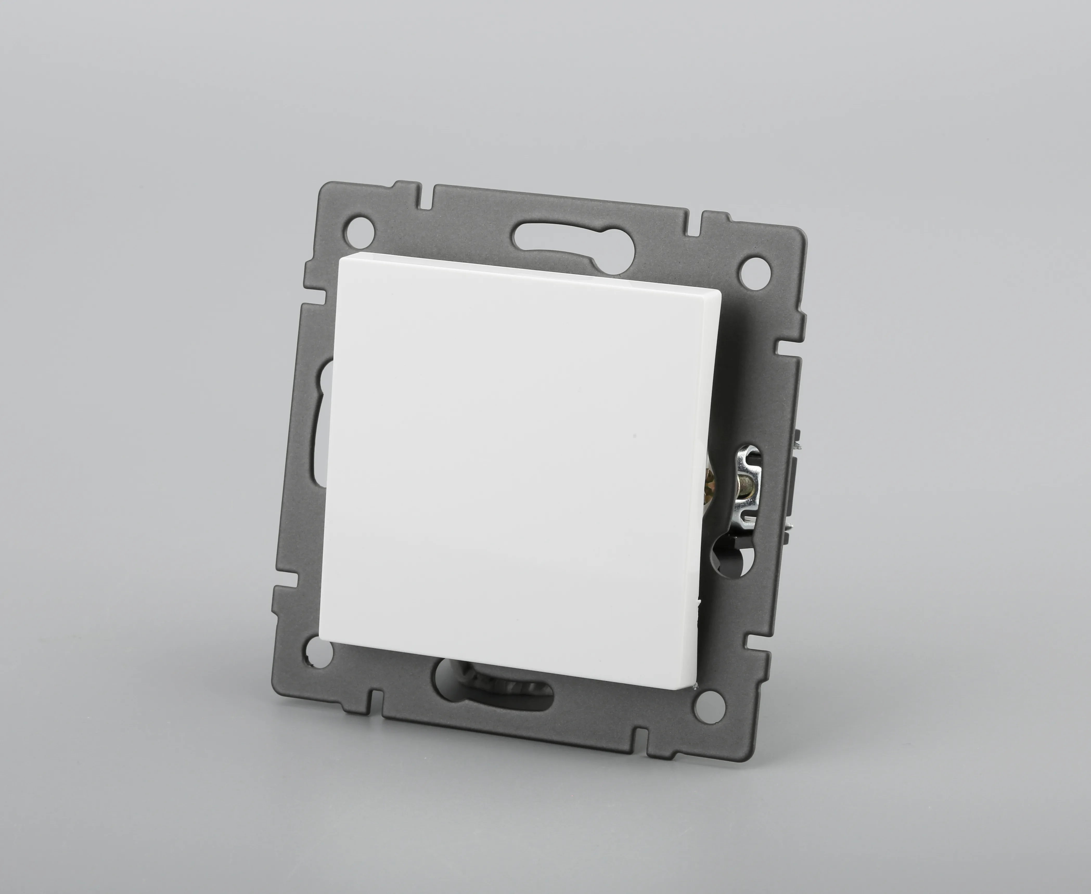 Механизм выключателя света клавишный на 1 пост 1 возвратная клавиша. Цвет - белый. Без фронтальной рамки. Уровень пылевлагозащиты IP20. Выключатель устанавливается в стандартный круглый подрозетник.