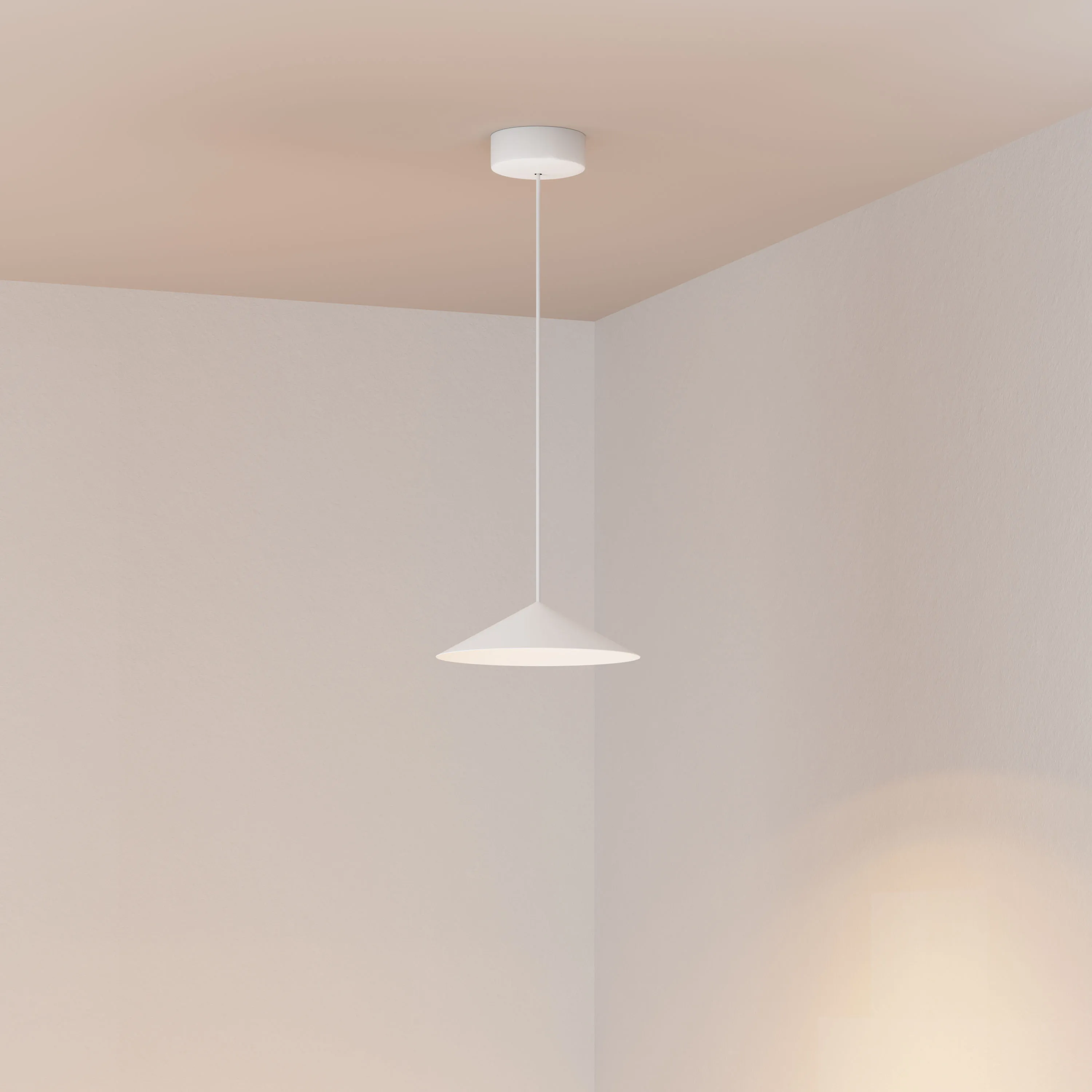Подвесной светильник. Мощность 10 Вт, св. поток 600 лм, 60 лм/Вт, теплый 2700 K, CRI>94, угол 36°, напряжение питания 230 В. Белый корпус из алюминия в форме конуса с белой внутренней поверхностью, линза-рассеиватель из PMMA, степень защиты IP20. Размер: диаметр 300 мм, высота 80 мм. Монтаж подвесной, длина подвеса 2000 мм, регулируемая. В комплекте две чаши. Габариты чаши (встроенной) Ø80 х 41 мм, врезное отверстие Ø55 мм, габариты чаши (накладной) Ø110 х 25 мм. Драйвер 2,8-12В, 500мА, пульсация <1%. Управление по TRIAC.