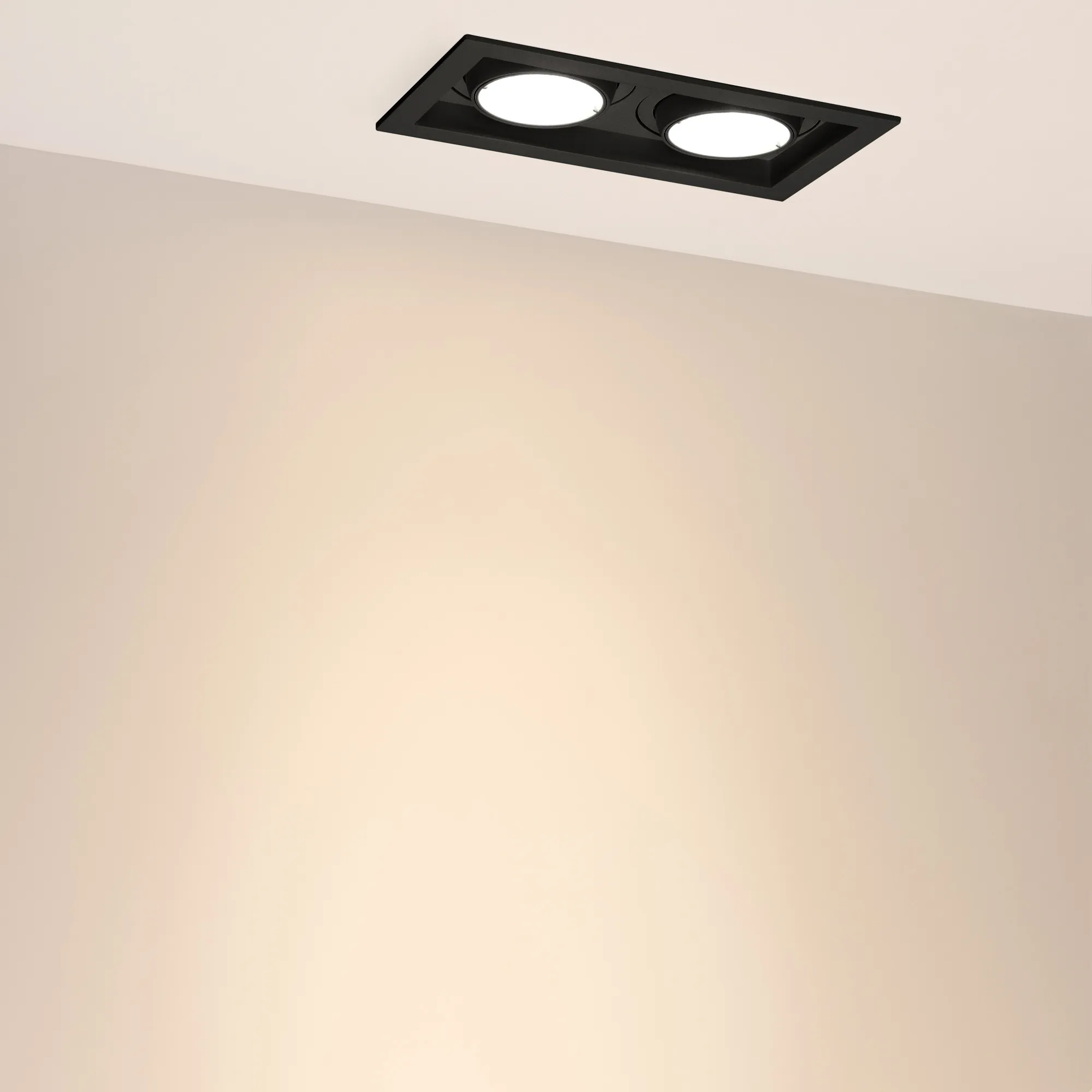 Поставка под заказ от 30 шт. Встраиваемый карданный светильник. Мощность 2х20 Вт, св. поток 4134 лм, 103 лм/Вт, тёплый 3000 K, CRI>92, угол 20°, напряжение питания 230 В. Чёрный корпус из алюминия, белая вставка, степень защиты IP20. Размер: длина 210 мм, ширина 117 мм, высота 105 мм. Монтаж встраиваемый, установочное отверстие: длина 190 мм, ширина 95 мм. Драйвер 24-42 В, 500 мА, пульсация <2%.