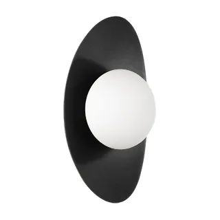 Декоративный настенный светильник. Мощность 6 Вт, св. поток 325-340 лм, 50-52 лм/Вт, теплый 2700 K,теплый 3200К, дневной 4000 K (переключаются), CRI>92, угол 150°, напряжение питания 230 В. Фигурный корпус из металла, цвет: черный, экран из матового стекла, степень защиты IP20. Размер: габариты световой части: Ø145x70 мм, габариты чаши: Ø110 x 42 мм. Монтаж накладной. Встроенный блок питания: 12В DC, 0,75А, пульсация <2%. Встроенный диммер TOUCH-DIM.