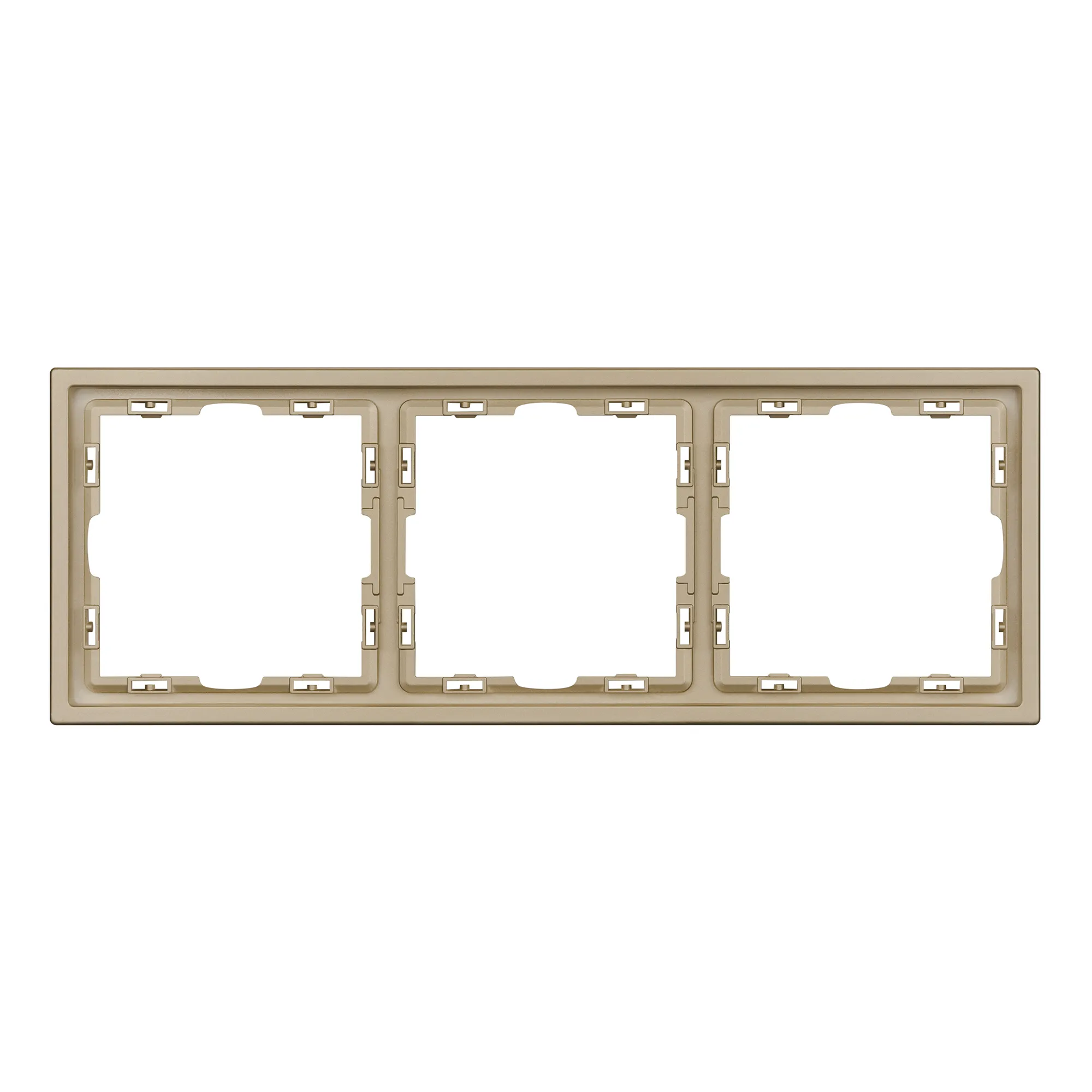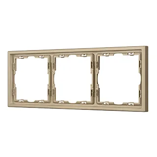 Рамка пластиковая на 3 поста, под встраиваемый механизм. Цвет - золотой песок, с Soft-Touch покрытием. Среднего уровня герметичности IP20. Ориентация монтажа горизонтальная.