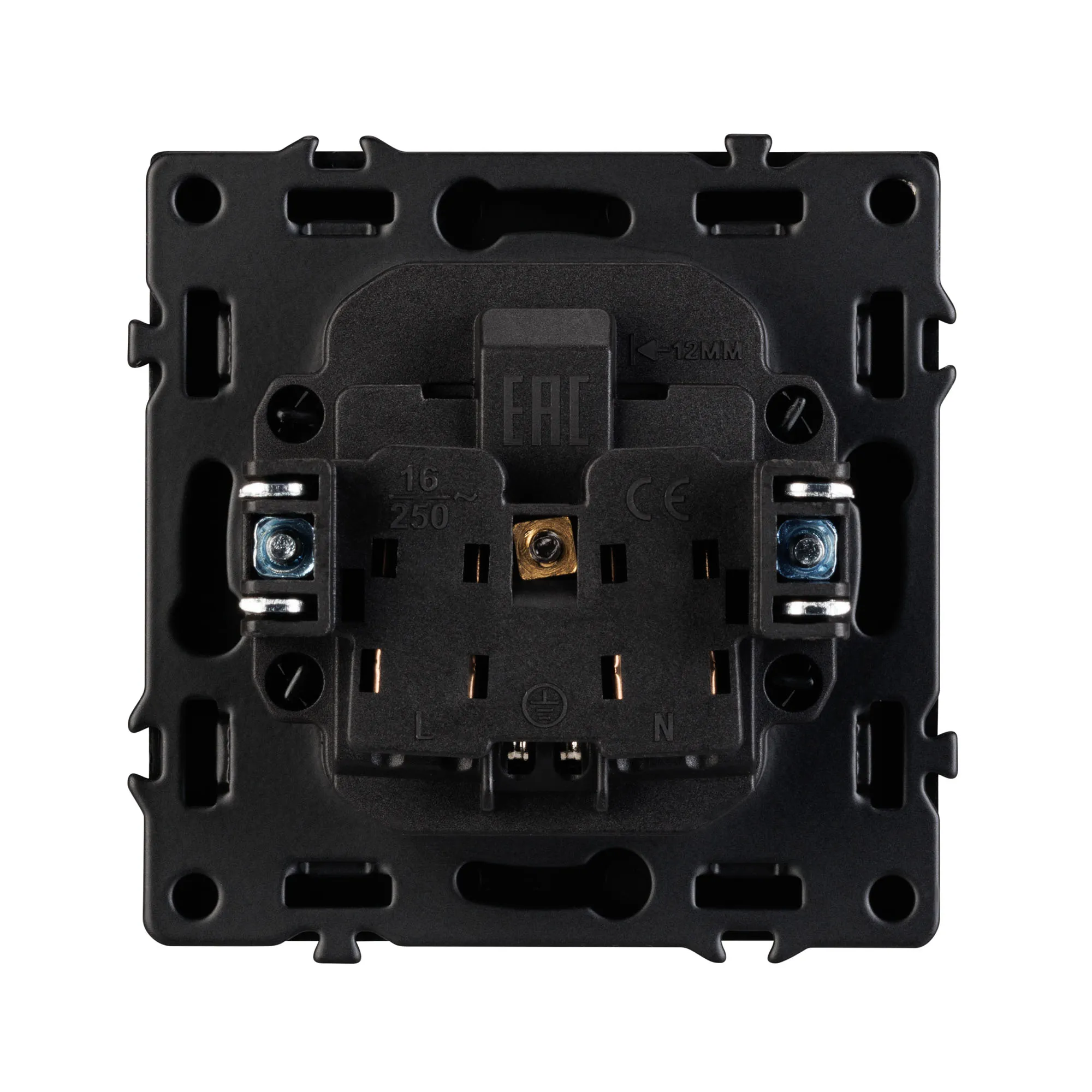 Механизм розетки с заземлением на 1 пост. Цвет - серый базальт, с Soft-Touch покрытием. Без фронтальной рамки. Уровень пылевлагозащиты IP20. Розетка устанавливается в стандартный подрозетник круглого сечения диаметром 60мм.