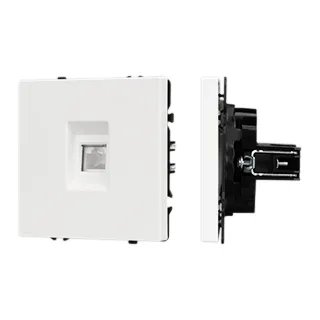 Механизм компьютерной розетки на 1 пост 6-й категории. Цвет - белый кварц, с Soft-Touch покрытием. Без фронтальной рамки. Уровень пылевлагозащиты IP20. Тип подключаемого разъема - RJ45. Розетка устанавливается в стандартный подрозетник круглого сечения диаметром 60мм.