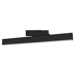 Светильник для треков/шин 4 провода с управлением TRIAC. Мощность 25 Вт, св. поток 2078 лм, 83 лм/Вт, теплый 3000 K, CRI>90, угол 100°, напряжение питания 230 В. Черный корпус из алюминия, материал рассеивателя PC, степень защиты IP20. Размер: длина 605 мм, ширина 34 мм, высота 50 мм. Входное напряжение AC220-240V. Драйвер 9-40В (300 - 1050мА), максимальная мощность 42 Вт. Монтаж на трек 3-фазный.