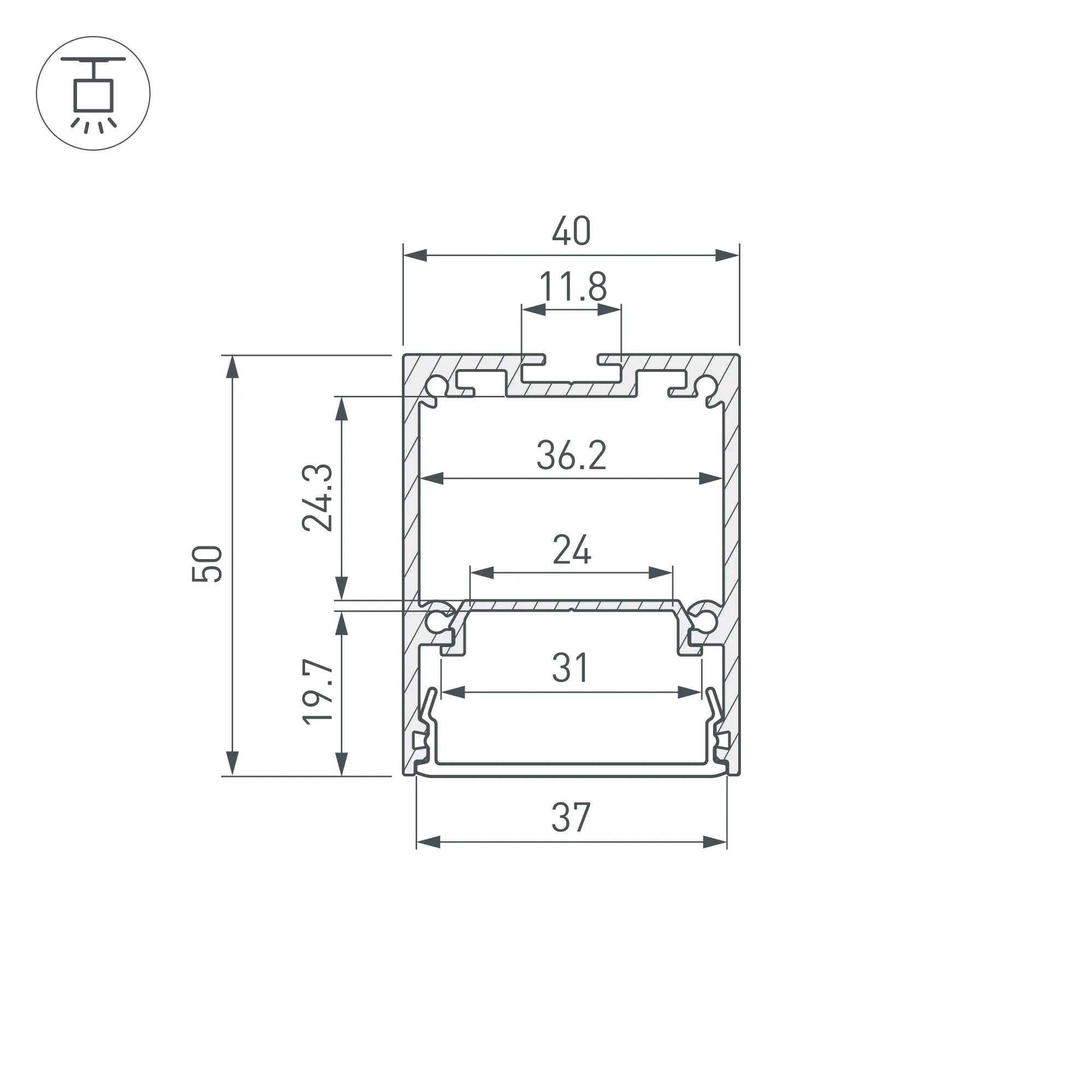 Алюминиевый профиль для светодиодных лент и линеек с возможностью герметизации до IP65. Цвет - чёрный (порошковая окраска), покрытие - зернистое. Габаритные размеры профиля (L×W×H): 2000x40x50 мм. Ширина площадки для ленты 24 мм. Экраны, заглушки и другие аксессуары приобретаются отдельно. Цена за 1 метр.