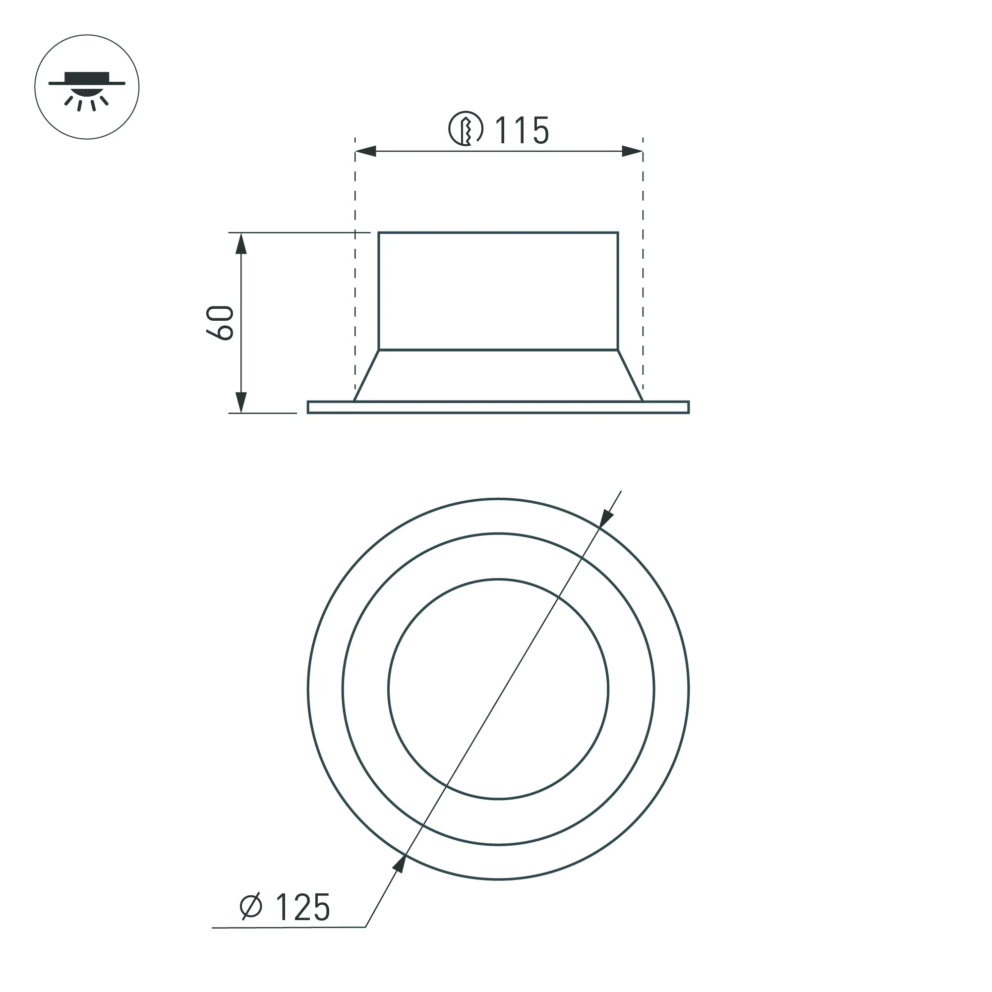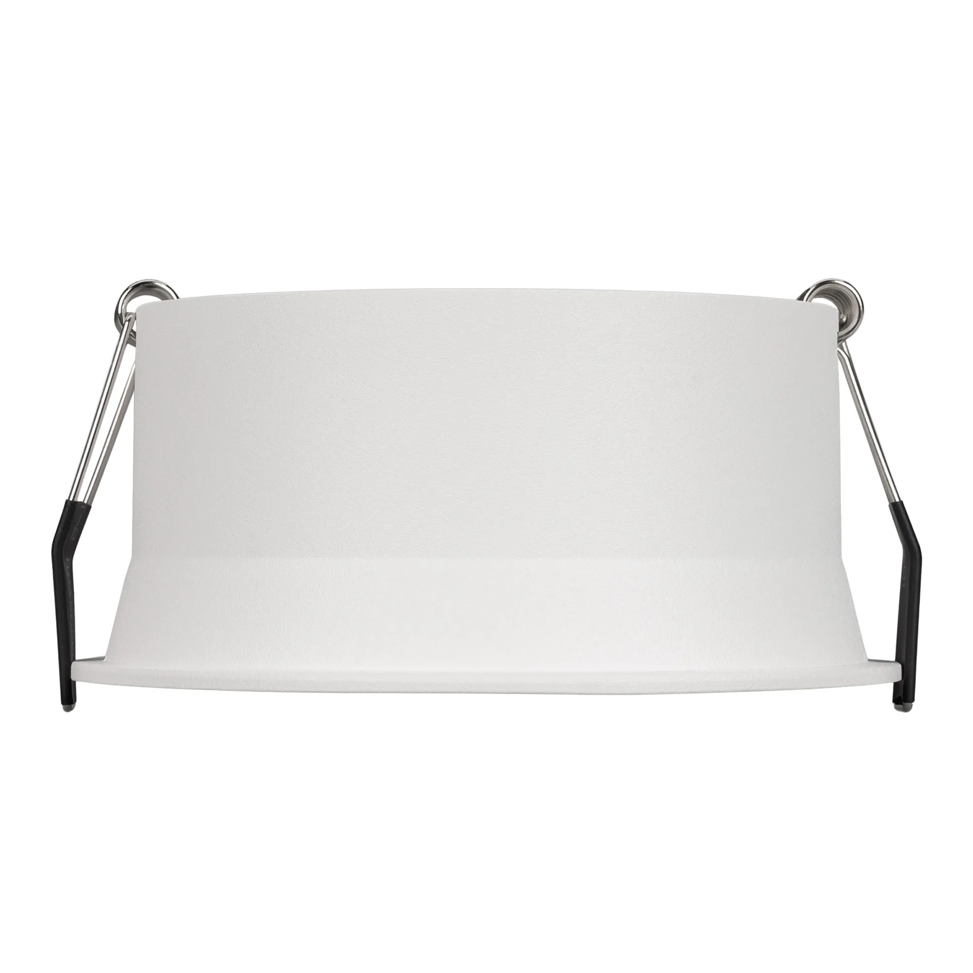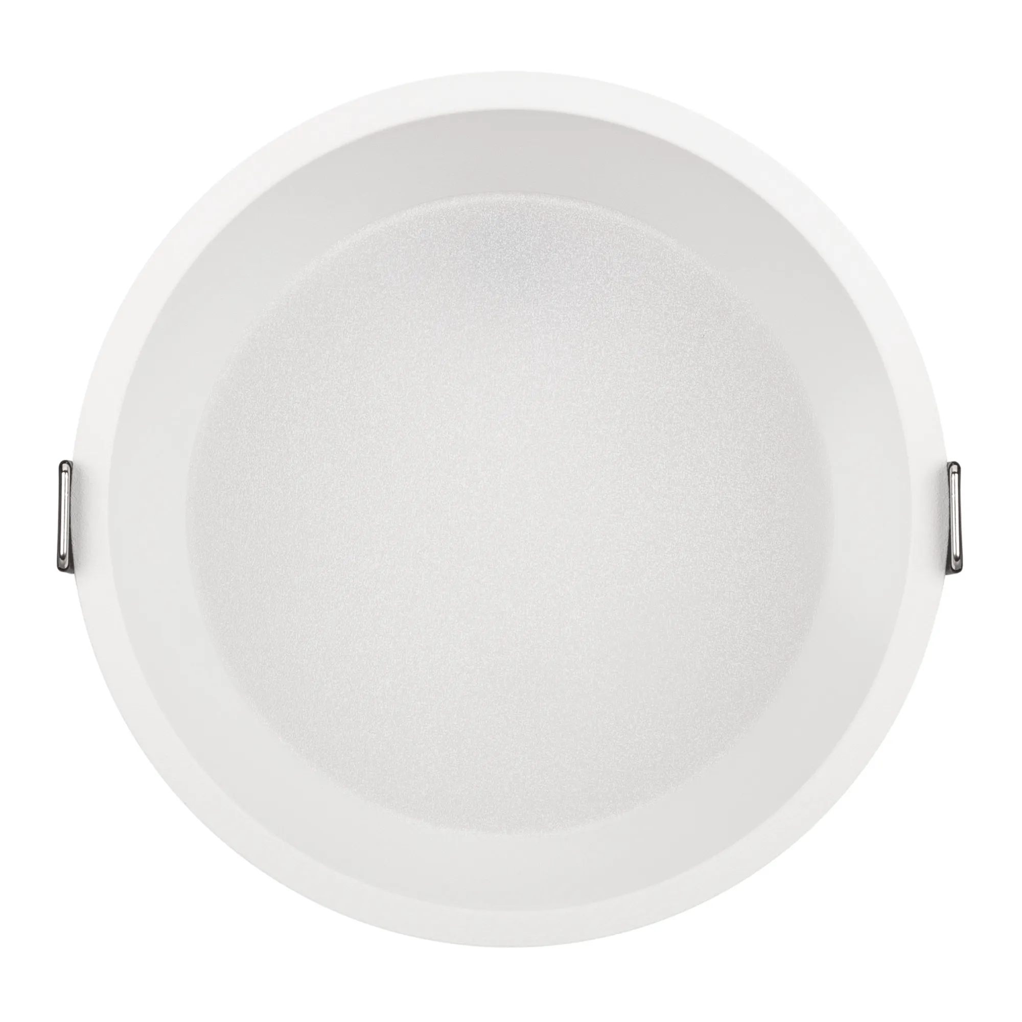 Встраиваемый светильник даунлайт. Мощность 16 Вт, св. поток 1220 лм, 76 лм/Вт, тёплый 3000 K, CRI>90, угол 90°, напряжение питания 230 В. Белый круглый корпус из алюминия, степень защиты IP20. Размер: диаметр 125 мм, высота 60 мм. Монтаж встраиваемый, установочное отверстие: диаметр 115 мм. Драйвер 27-42 В, 400 мА, пульсация <2%.