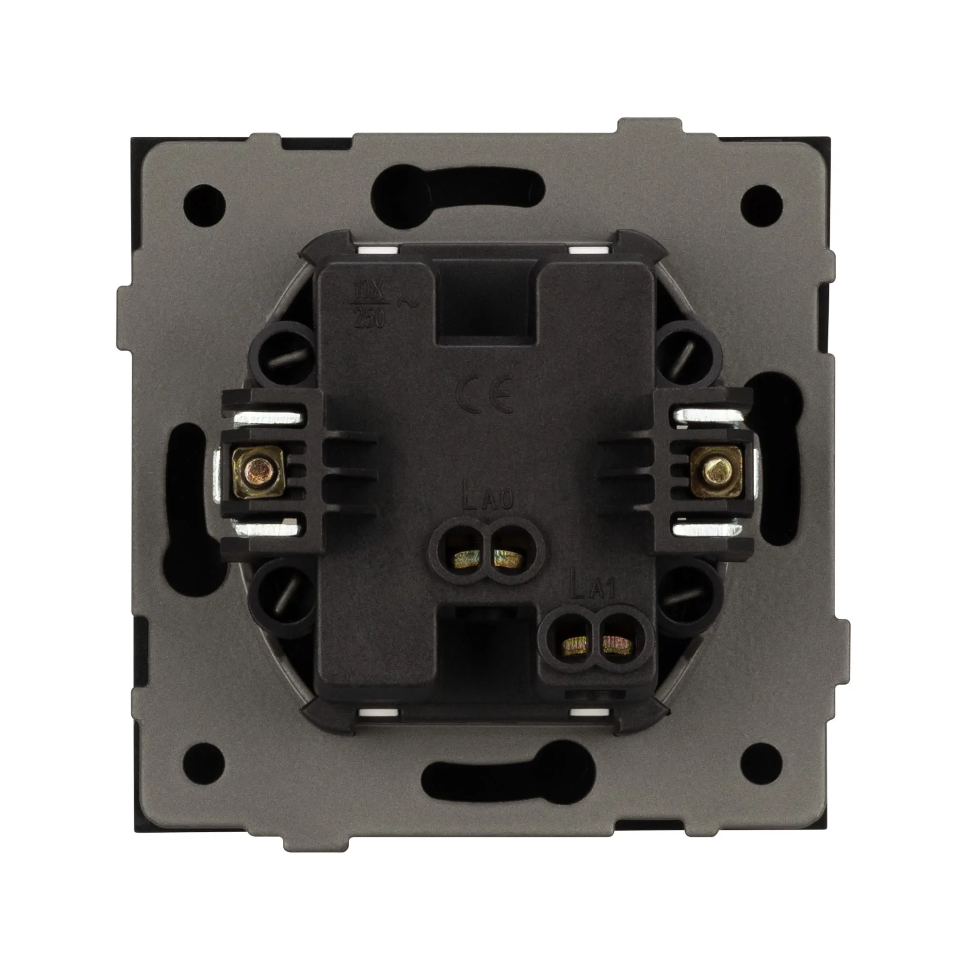 Механизм звонкового выключателя на 1 пост 1 клавиша. Цвет - серый. Без фронтальной рамки. Уровень пылевлагозащиты IP20. Выключатель устанавливается в стандартный подрозетник круглого сечения диаметром 60мм.